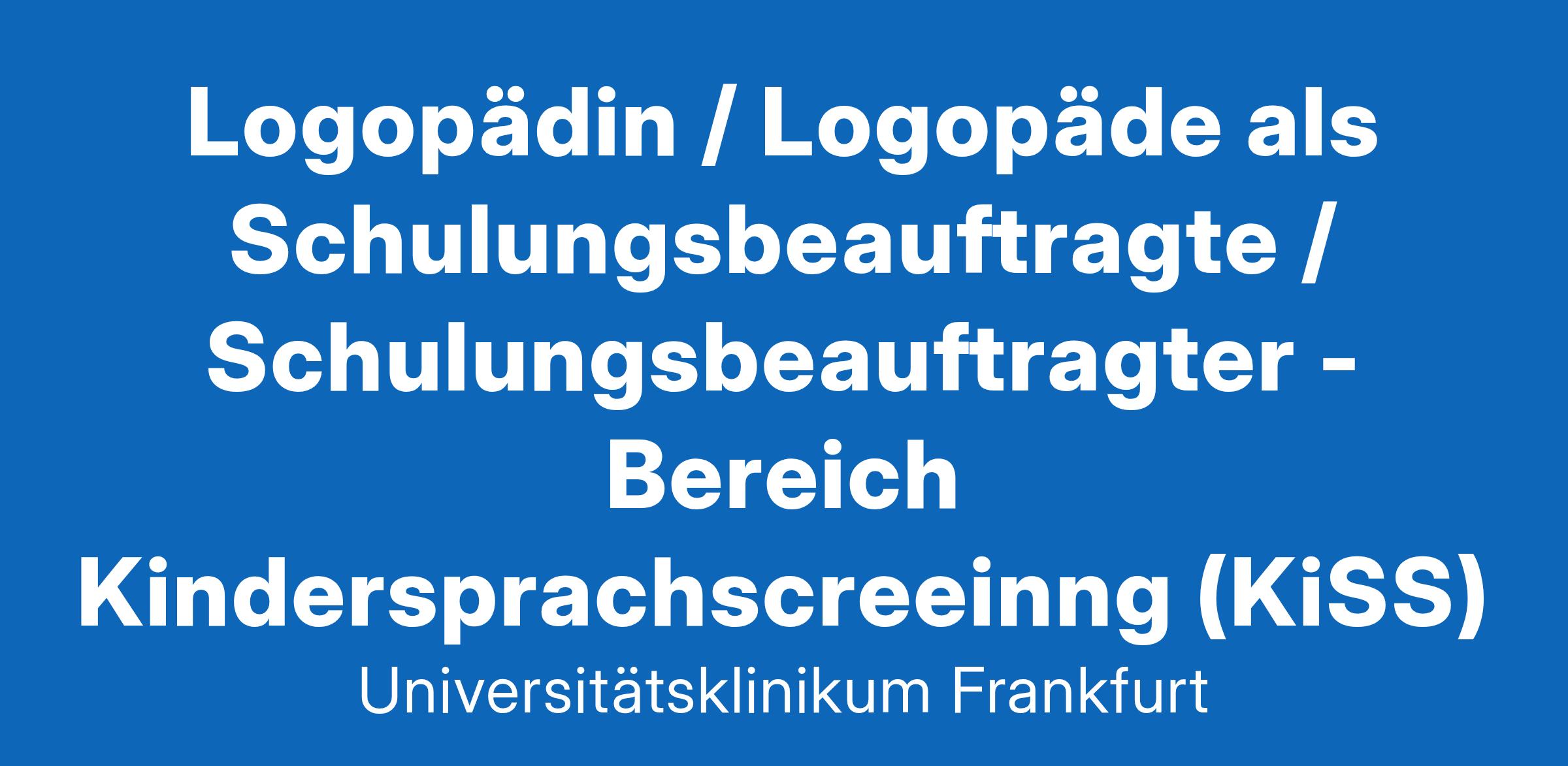 „Aus Wissen wird Gesundheit“ - wir füllen dieses Motto tagtäglich mit Leben, entwickeln neue Ideen und Altbewährtes weiter. Das Universitätsklinikum Frankfurt besteht seit 1914 und unsere rund 8.500 Beschäftigten bringen sich mit ihrem Können und Wissen an den 33 Fachkliniken, klinisch theoretischen Instituten und in den Verwaltungsbereichen ein. Die enge Verbindung von Krankenversorgung mit Forschung und Lehre sowie ein Klima der Kollegialität, Internationalität und berufsgruppenübergreifender Zusammenarbeit zeichnen das Universitätsklinikum aus.Logopädin / Logopäde als Schulungsbeauftragte / Schulungsbeauftragter - Bereich Kindersprachscreeinng (KiSS)(wir richten uns mit dieser Ausschreibung an Bewerbende jeden Geschlechts)Vollzeit oder Teilzeit | befristet für 2 Jahre mit Option auf Weiterbeschäftigung | Ausschreibungsnummer: 160-2025Das Hessische Kindervorsorgezentrum der Universitätsmedizin Frankfurt wurde vom Hessischen Ministerium für Soziales und Integration unter anderem mit der Etablierung und Koordinierung eines Screenings zur Sprachstandserfassung bei Kindern im Alter von 4 bis 4,5 Jahren beauftragt. Das in Hessen etablierte Kindersprachscreeinng (KiSS) bindet Kindertagesstätten und Gesundheitsämter ein, koordiniert die notwendigen Schulungen, erfasst die in Fragebögen erhobenen Daten und wertet diese aus. Ziel ist es, Sprachdefizite bei Kindern rechtzeitig aufzudecken, um diese bereits vor der Einschulung fördern bzw. behandeln zu können.Als Erweiterung unseres Teams suchen wir Sie als Elternzeitvertretung zum 01.04.2025 .Für einen Einblick in die Universitätsmedizin Frankfurt geht es hier entlang .Ihre AufgabenÜbernahme sämtlicher Aufgaben im KiSS-Schulungsbereich, u.a.: