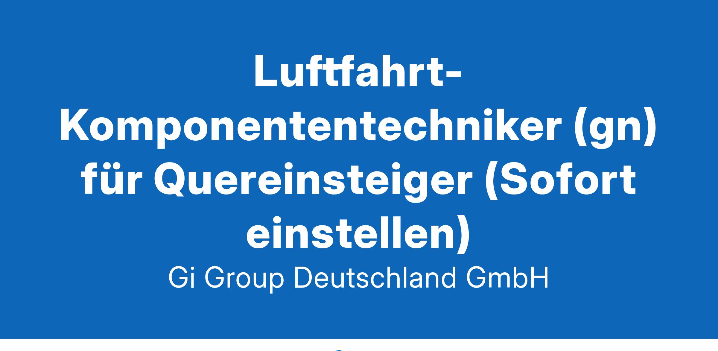 Kfz-Mechaniker (gn) im Quereinstieg ab sofort in Vollzeit in Hamburg im Rahmen der Direktvermittlung Die Gi Group ist ein international agierender Personaldienstleister mit mehr als 500 Standorten in 40 Ländern. Unser Kunde ist ein renomniertes und zukunftorientiertes Unternehmen aus der Luftfahrt.  Deine Aufgaben Die Wartung und Reparatur von Flugzeugkomponenten  Reparaturaufträge bearbeiten und Modifikationen im Rahmen der ergänzenden Instandhaltung durchführen  Komponenten auf einem Teststand prüfen und einstellen Dokumentation der Instandhaltungsarbeiten vornehmen und Komponenten für den Flugbetrieb zertifizieren Dein Profil Eine abgeschlossene Berufsausbildung in einem luftfahrttechnischen Bereich, z.B. Fluggerätmechaniker Alternativ: Eine abgeschlossene Berufsausbildung in einem metallverarbeitenden Bereich, z.B.Industriemechaniker, Kfz-Mechaniker, Zerspanungsmechaniker, Mechatroniker, Werkzeugmechaniker, Feinwerkmechaniker, Anlagenmechaniker oder eine vergleichbare Qualifikation Bereitschaft zum Erwerb fehlender Qualifikationen sowie zu berufsbezogener Weiterbildung Gute Englischkenntnisse Das bietet unser Kunde  Urlaubs- und Weihnachtsgeld sowie eine Gewinnbeteiligung  Flexible Arbeitszeiten (Gleitzeit, keine Schichtarbeit) und 30 Tage Urlaub  Flugvergünstigungen, Einkaufsrabatte in Geschäften und Jobrad-Leasing  Kostenloses Parken, betriebliche Altersvorsorge und Verpflegungszuschuss für die Kantine  Deine Bewerbung Für Deine Bewerbung als Kfz-Mechaniker im Quereinstieg klicke bitte einfach auf „Jetzt bewerben“. Dort kannst Du Deine Kontaktdaten eingeben sowie Deinen Lebenslauf und Deine Bewerbungsunterlagen hochladen. Du benötigst dafür nur ca. 1 Minute. Dein zuständiger Personaldisponent wird sich bei Dir schnellstmöglich melden. Gerne kannst Du uns auch Deine Bewerbungsunterlagen per E-Mail zusenden. Wir freuen uns auf Deine Bewerbung als Kfz-Mechaniker im Quereinstieg! Unsere Stellenangebote richten sich an Arbeitssuchende jeglichen Geschlechts. (gn) = geschlechtsneutral. Kontakt Gi Group Recruiting Team