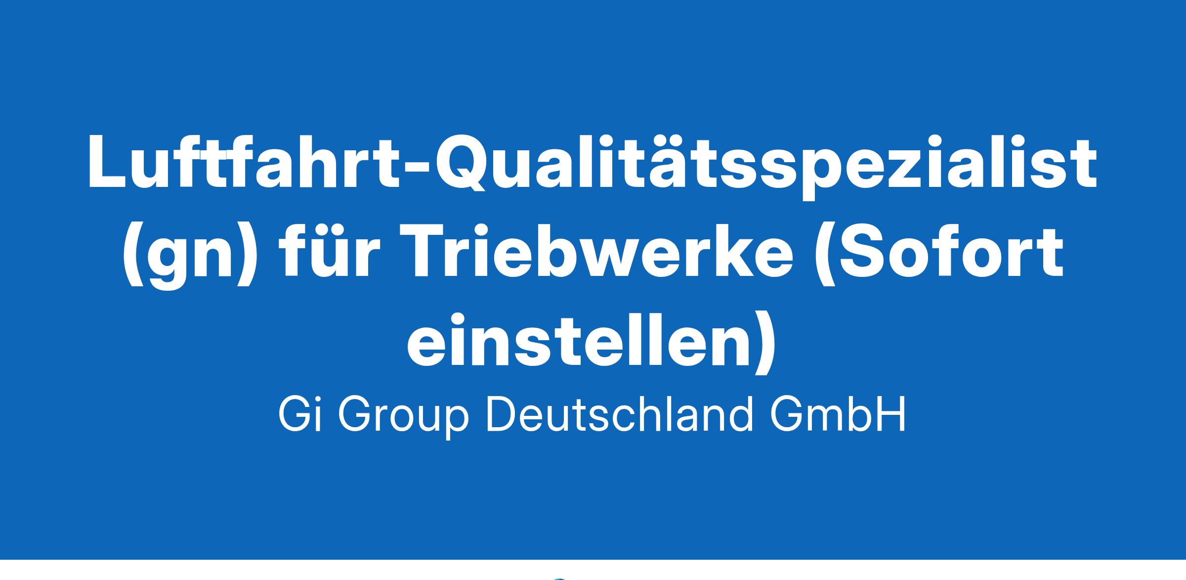 versierter Umgang mit Messmitteln und Messgeräten Erfahrungen in der Luftfahrtbranche oder in Instandhaltungsbetrieben sind wünschenswert Gute Englischkenntnisse SAP-Kenntnisse sind wünschenswert Bereitschaft zum Schichtdienst (verschiedene Schichtmodelle mit Zulagen)  Das bietet unser Kunde Urlaubs- und Weihnachtsgeld sowie eine Gewinnbeteiligung, 30 Tage Urlaub  Flugvergünstigungen, Einkaufsrabatte in Geschäften und Jobrad-Leasing  Kostenloses Parken, betriebliche Altersvorsorge und Verpflegungszuschuss für die Kantine  Fitness- und Sportangebote, Jobticket/Zuschuss ÖPNV Und vieles mehr  Deine Bewerbung Für Deine Bewerbung als Facharbeiter Triebwerke-Qualitätsprüfer klicke bitte einfach auf „Jetzt bewerben“. Dort kannst Du Deine Kontaktdaten eingeben sowie Deinen Lebenslauf und Deine Bewerbungsunterlagen hochladen. Du benötigst dafür nur ca. 1 Minute. Dein zuständiger Personaldisponent wird sich bei Dir schnellstmöglich melden. Gerne kannst Du uns auch Deine Bewerbungsunterlagen per E-Mail zusenden. Wir freuen uns auf Deine Bewerbung als Facharbeiter Triebwerke-Qualitätsprüfer! Unsere Stellenangebote richten sich an Arbeitssuchende jeglichen Geschlechts. (gn) = geschlechtsneutral. Kontakt Gi Group Recruiting Team
