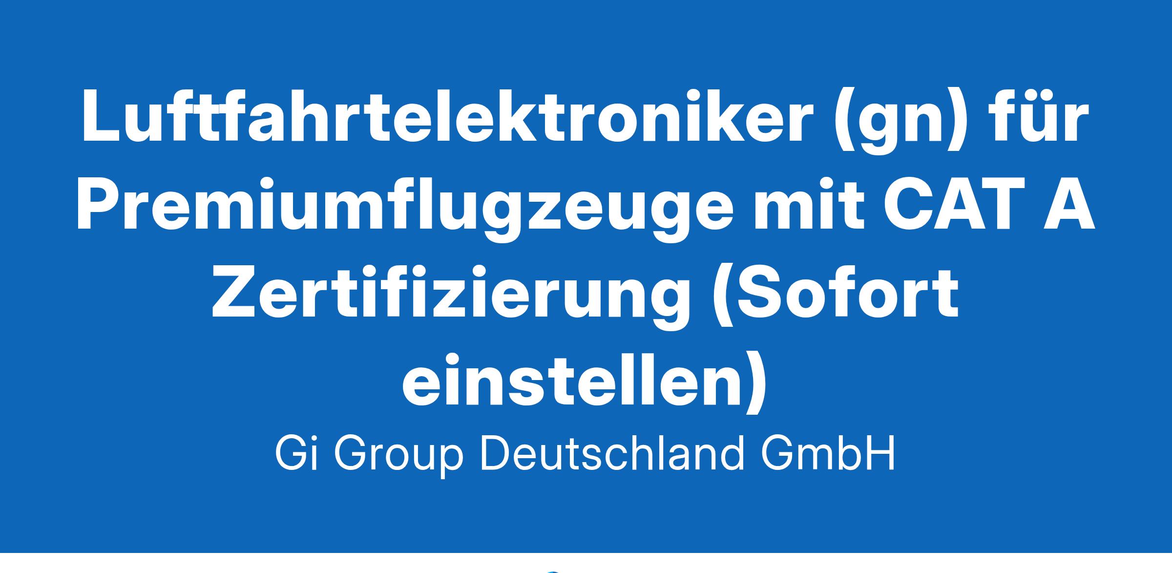 Luftfahrtelektroniker (gn) für Premiumflugzeuge mit CAT A Zertifizierung (Sofort einstellen)