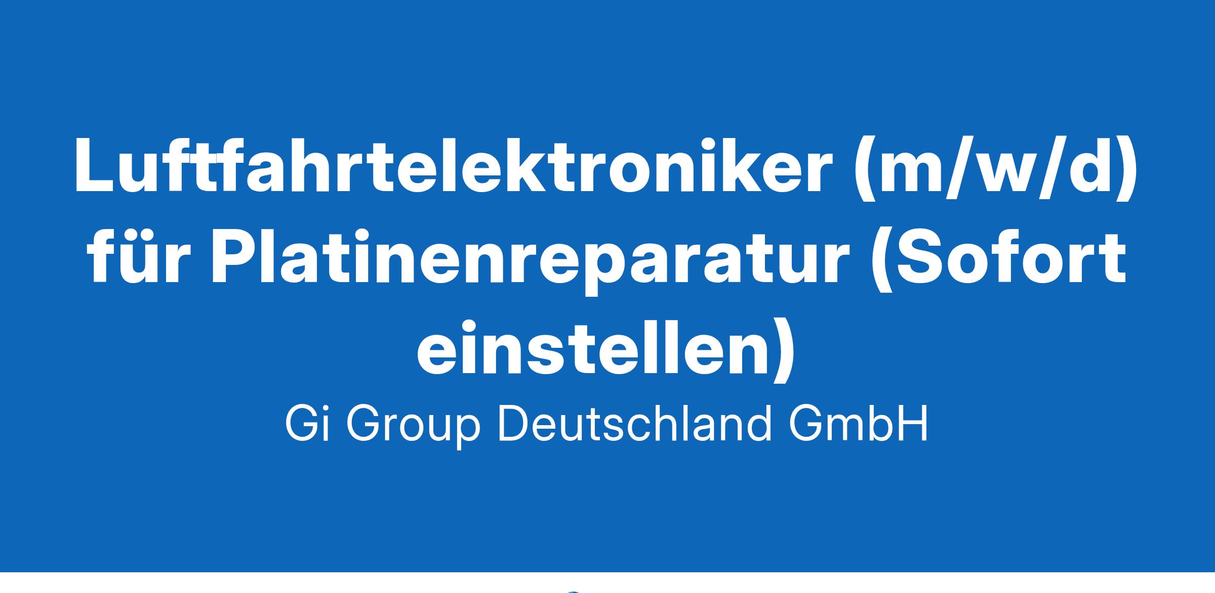 Elektroniker (gn) Luftfahrt ab sofort in Vollzeit in Hamburg in der Direktvermittlung  Die Gi Group ist ein international agierender Personaldienstleister mit mehr als 500 Standorten in 40 Ländern. Unser Kunde ist ein renommiertes und zukunftsorientiertes Unternehmen aus der Luftfahrt.  Deine Aufgaben Platinenreparatur auf Bauteilebene durchführen und verschiedene Löttechniken anwenden Fehlerdiagnosen an elektronischen Fluggeräten oder Baugruppen unter Anwendung von Messgeräten, Test- und Prüfeinrichtungen durchführen   Arbeiten mit technischen Unterlagen und entsprechnde Dokumentation Dein Profil Eine abgeschlossene luftfahrttechnische Berufsausbildung, z.B. als Fluggerätelektroniker Alternativ auch eine abgeschlossene Berufsausbildung in einem elektronischen Beruf, z.B. Elektroniker für Geräte und Systeme, Radio- und Fernsehtechniker, Kommunikationselektroniker,, Funkelektroniker oder eine vergleichbare Qualifikation Du bringst Fachkenntnisse in Analog-/Digital-/Mess- oder Schaltungstechnik mit  Bereitschaft zum Erwerb fehlender Qualifikationen sowie zu berufsbezogener Weiterbildung Gute Englischkenntnisse Das bietet unser Kunde  Urlaubs- und Weihnachtsgeld sowie eine Gewinnbeteiligung  Flexible Arbeitszeiten (Gleitzeit, keine Schichtarbeit) und 30 Tage Urlaub  Flugvergünstigungen, Einkaufsrabatte in Geschäften und Jobrad-Leasing  Kostenloses Parken, betriebliche Altersvorsorge und Verpflegungszuschuss für die Kantine  Deine Bewerbung Für Deine Bewerbung als Elektroniker klicke bitte einfach auf „Jetzt bewerben“. Dort kannst Du Deine Kontaktdaten eingeben sowie Deinen Lebenslauf und Deine Bewerbungsunterlagen hochladen. Du benötigst dafür nur ca. 1 Minute. Dein zuständiger Personaldisponent wird sich bei Dir schnellstmöglich melden. Gerne kannst Du uns auch Deine Bewerbungsunterlagen per E-Mail zusenden. Wir freuen uns auf Deine Bewerbung Elektroniker in der Luftfahrt! Unsere Stellenangebote richten sich an Arbeitssuchende jeglichen Geschlechts. (gn) = geschlechtsneutral. Kontakt Gi Group Recruiting Team