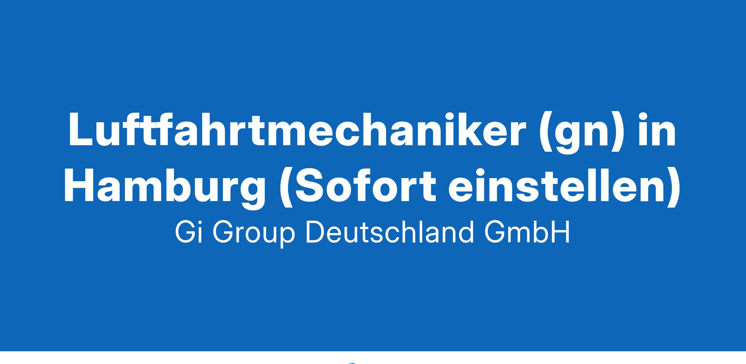 Mechaniker (gn) in der Luftfahrtindustrie ab sofort in Vollzeit in Hamburg im Rahmen der Direktvermittlung Die Gi Group ist ein international agierender Personaldienstleister mit mehr als 500 Standorten in 40 Ländern. Unser Kunde ist ein renommiertes und zukunftsorientiertes Unternehmen aus der Luftfahrt.  Deine Aufgaben Die Wartung und Reparatur von Flugzeugkomponenten  Reparaturaufträge bearbeiten und Modifikationen im Rahmen der ergänzenden Instandhaltung durchführen  Komponenten auf einem Teststand prüfen und einstellen Dokumentation der Instandhaltungsarbeiten vornehmen und Komponenten für den Flugbetrieb zertifizieren Dein Profil Eine abgeschlossene Berufsausbildung in einem luftfahrttechnischen Bereich, z.B. Fluggerätmechaniker Alternativ: Eine abgeschlossene Berufsausbildung in einem metallverarbeitenden Bereich, z.B.Industriemechaniker, Kfz-Mechaniker, Zerspanungsmechaniker, Mechatroniker, Werkzeugmechaniker, Feinwerkmechaniker, Anlagenmechaniker oder eine vergleichbare Qualifikation Bereitschaft zum Erwerb fehlender Qualifikationen sowie zu berufsbezogener Weiterbildung Gute Englischkenntnisse Das bietet unser Kunde  Urlaubs- und Weihnachtsgeld sowie eine Gewinnbeteiligung  Flexible Arbeitszeiten (Gleitzeit, keine Schichtarbeit) und 30 Tage Urlaub  Flugvergünstigungen, Einkaufsrabatte in Geschäften und Jobrad-Leasing  Kostenloses Parken, betriebliche Altersvorsorge und Verpflegungszuschuss für die Kantine  Deine Bewerbung Für Deine Bewerbung als Mechaniker klicke bitte einfach auf „Jetzt bewerben“. Dort kannst Du Deine Kontaktdaten eingeben sowie Deinen Lebenslauf und Deine Bewerbungsunterlagen hochladen. Du benötigst dafür nur ca. 1 Minute. Dein zuständiger Personaldisponent wird sich bei Dir schnellstmöglich melden. Gerne kannst Du uns auch Deine Bewerbungsunterlagen per E-Mail zusenden. Wir freuen uns auf Deine Bewerbung als Mechaniker in der Luftfahrtindustrie! Unsere Stellenangebote richten sich an Arbeitssuchende jeglichen Geschlechts. (gn) = geschlechtsneutral. Kontakt Gi Group Recruiting Team