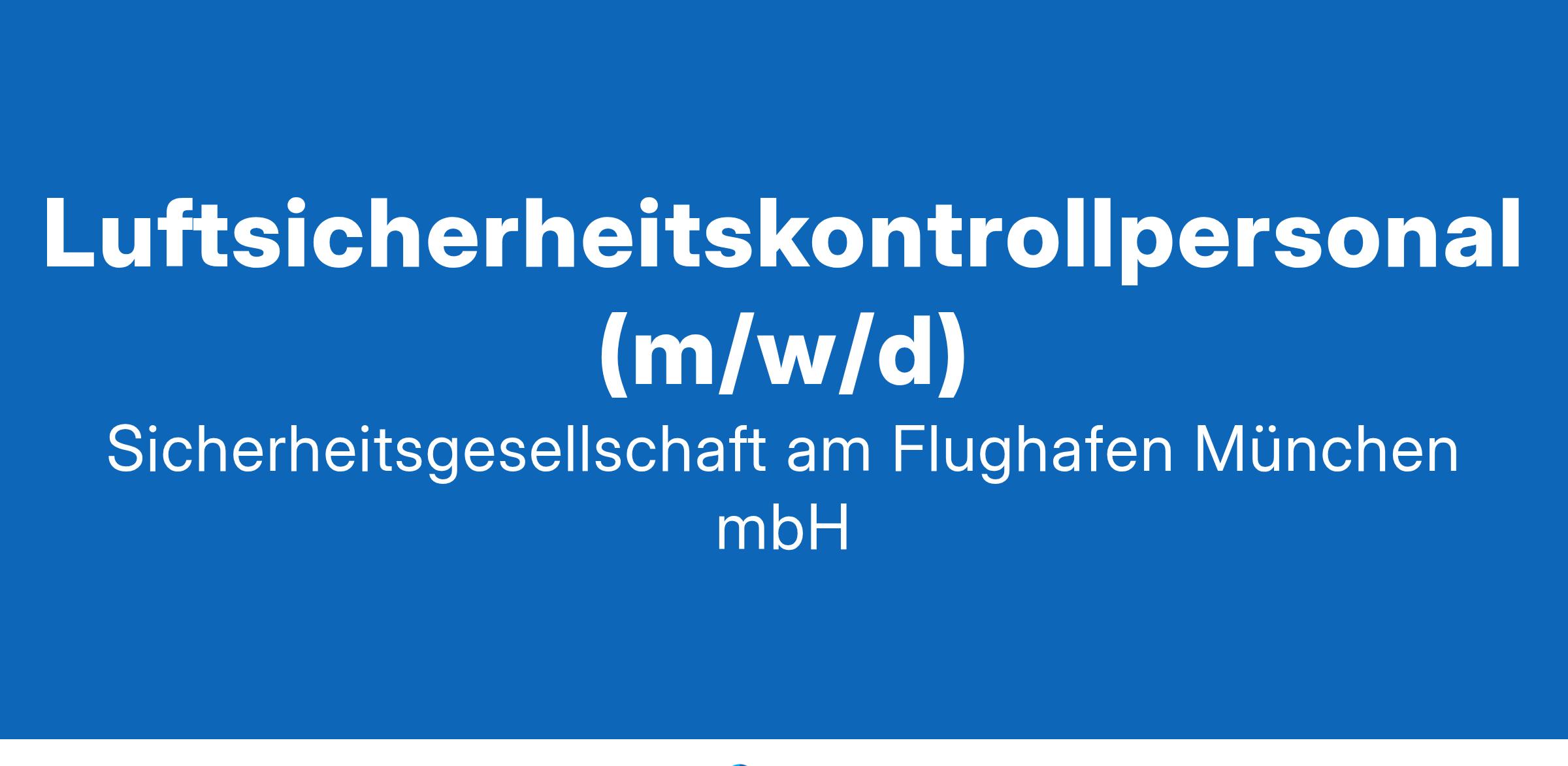 Dann bewerben Sie sich jetzt unter www.sgm-muc.de/stellenangebote ; Ihr attraktiver und sicherer Arbeitgeber, die Sicherheitsgesellschaft am Flughafen München mbH, ein Unternehmen des Freistaats Bayern.