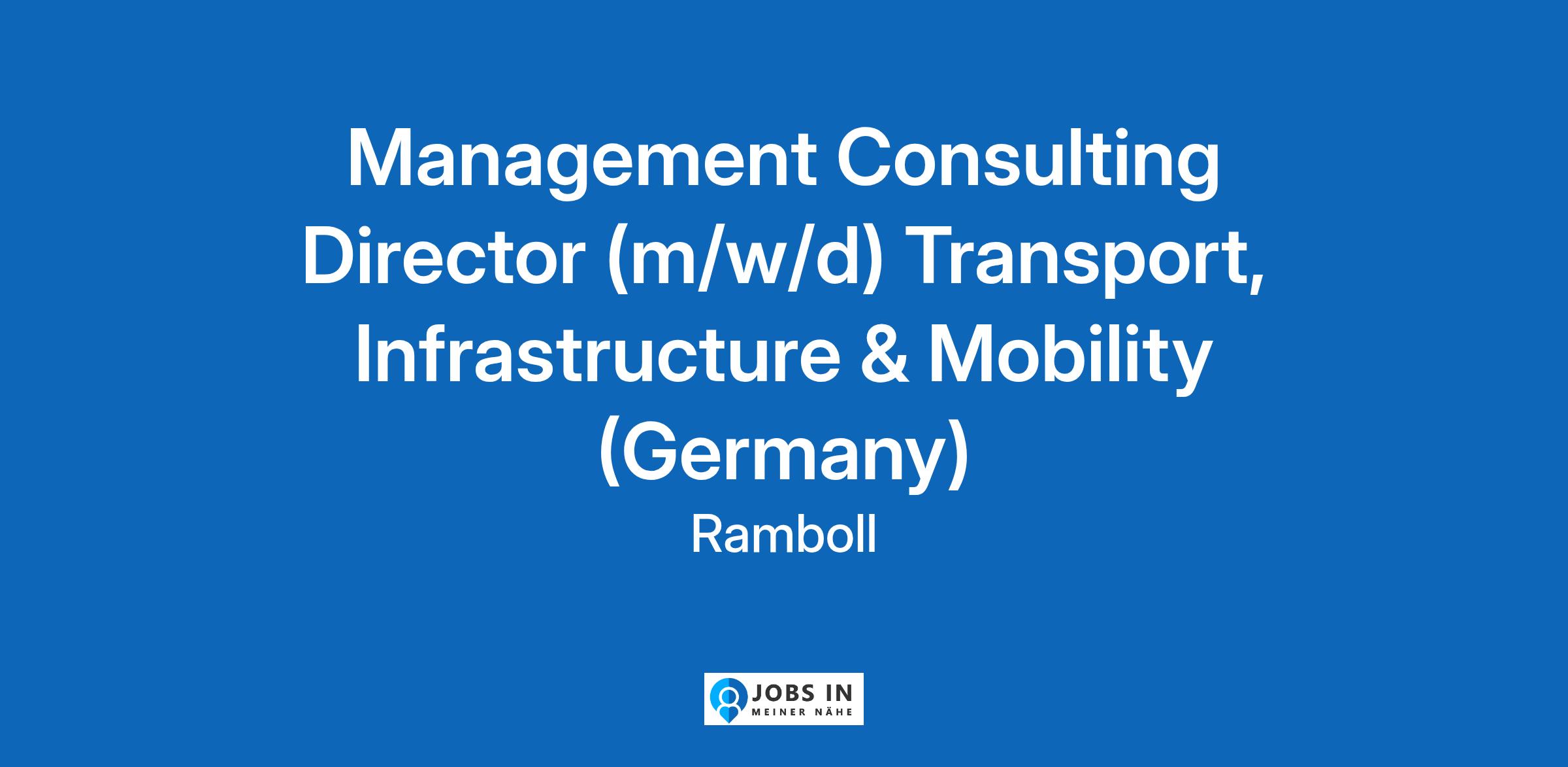 Fr eine fhrende strategische Position in unserer globalen Transport, Infrastructure and Mobility Industry Practice sucht Ramboll Management Consulting eine unternehmerisch denkende Fhrungspersnlichkeit mit ausgeprgter Markt- und Kundenorientierung. Als Director (m/w/d) verantwortest Du die bergeordnete Geschftsentwicklung und Positionierung im deutschen Markt mit direkter Umsatzverantwortung, Teamfhrung und C-Level-Prsenz.