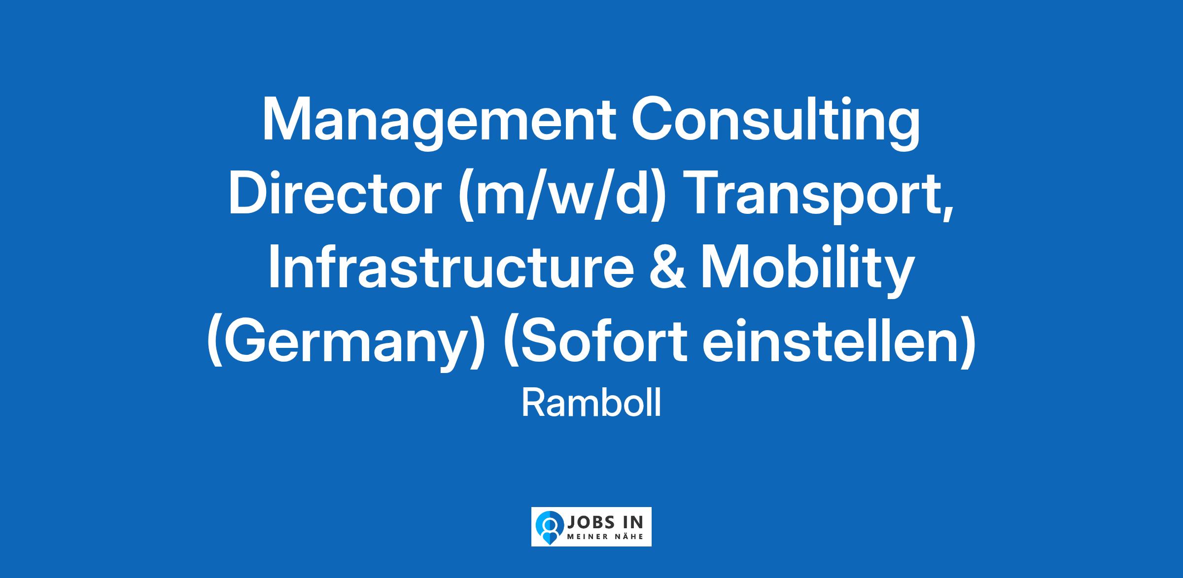 Fr eine fhrende strategische Position in unserer globalen Transport, Infrastructure and Mobility Industry Practice sucht Ramboll Management Consulting eine unternehmerisch denkende Fhrungspersnlichkeit mit ausgeprgter Markt- und Kundenorientierung. Als Director (m/w/d) verantwortest Du die bergeordnete Geschftsentwicklung und Positionierung im deutschen Markt mit direkter Umsatzverantwortung, Teamfhrung und C-Level-Prsenz.