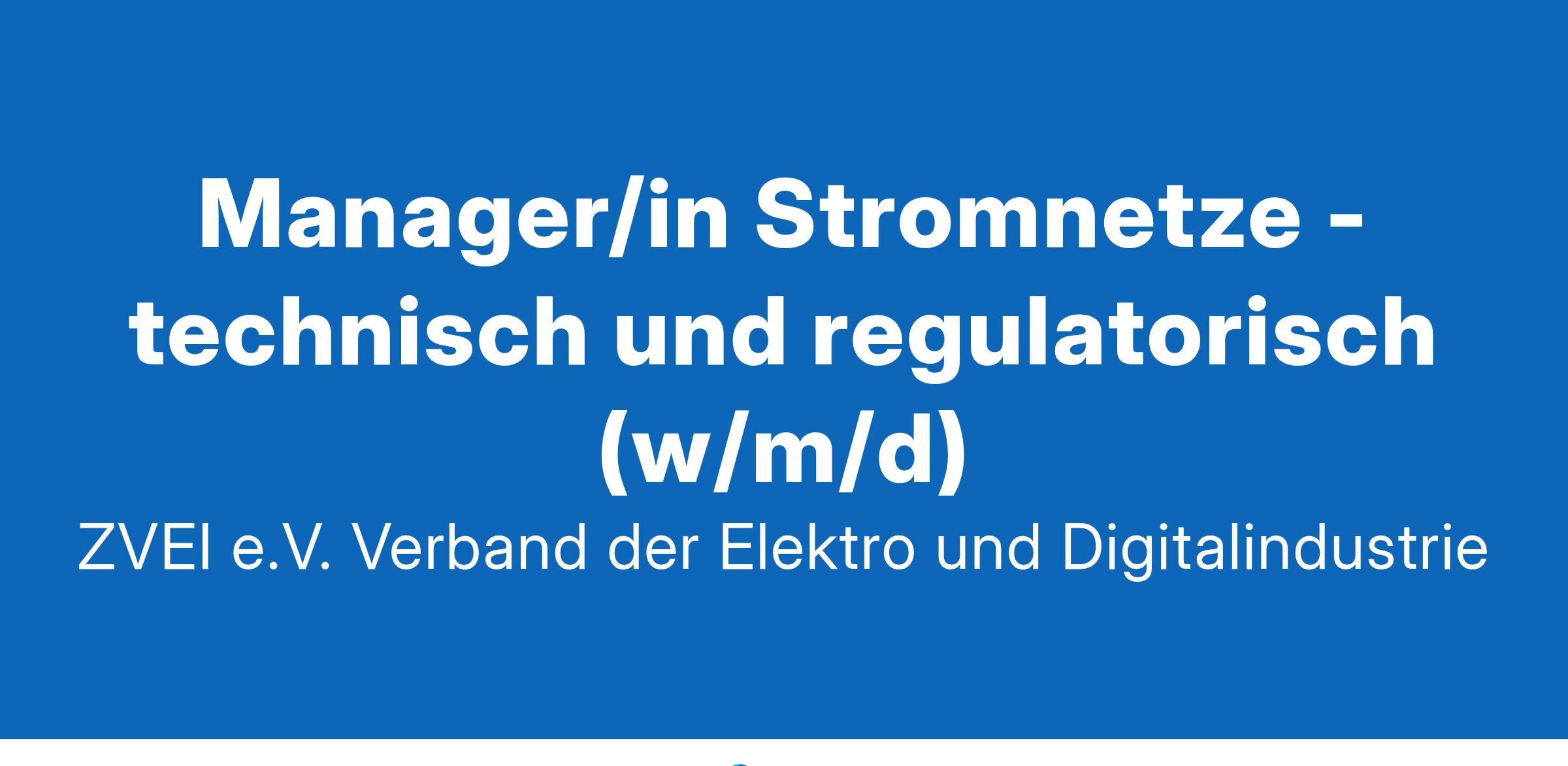 Wir sind der Verband der Elektro- und Digitalindustrie, der ZVEI. Wir haben ein Ziel: Wir wollen die Zukunft elektrisch, digital und nachhaltig gestalten. Gemeinsam mit unseren mehr als 1.100 Mitgliedsunternehmen treiben wir den Wandel dafür jeden Tag weiter voran. Technologisch, politisch und gesellschaftlich. Bei uns können Sie einen wichtigen Beitrag zur Entstehung der All-Electric-Society leisten. Mehr Informationen zu unseren electrifying ideas finden Sie unter www.zvei.org .Wir suchen zum nächstmöglichen Zeitpunkt Verstärkung für unser engagiertes Team im ZVEI e. V., bevorzugt am Standort Berlin .Manager/in Stromnetze - technisch und regulatorisch (w/m/d)Ihre AufgabenVertretung der Interessen unserer Mitglieder gegenüber politischen, gesellschaftlichen und wirtschaftlichen Entscheidern in Deutschland und Europa mit Fokus auf technische und regulatorische Rahmenbedingungen für die Weiterentwicklung der Stromnetze in Deutschland