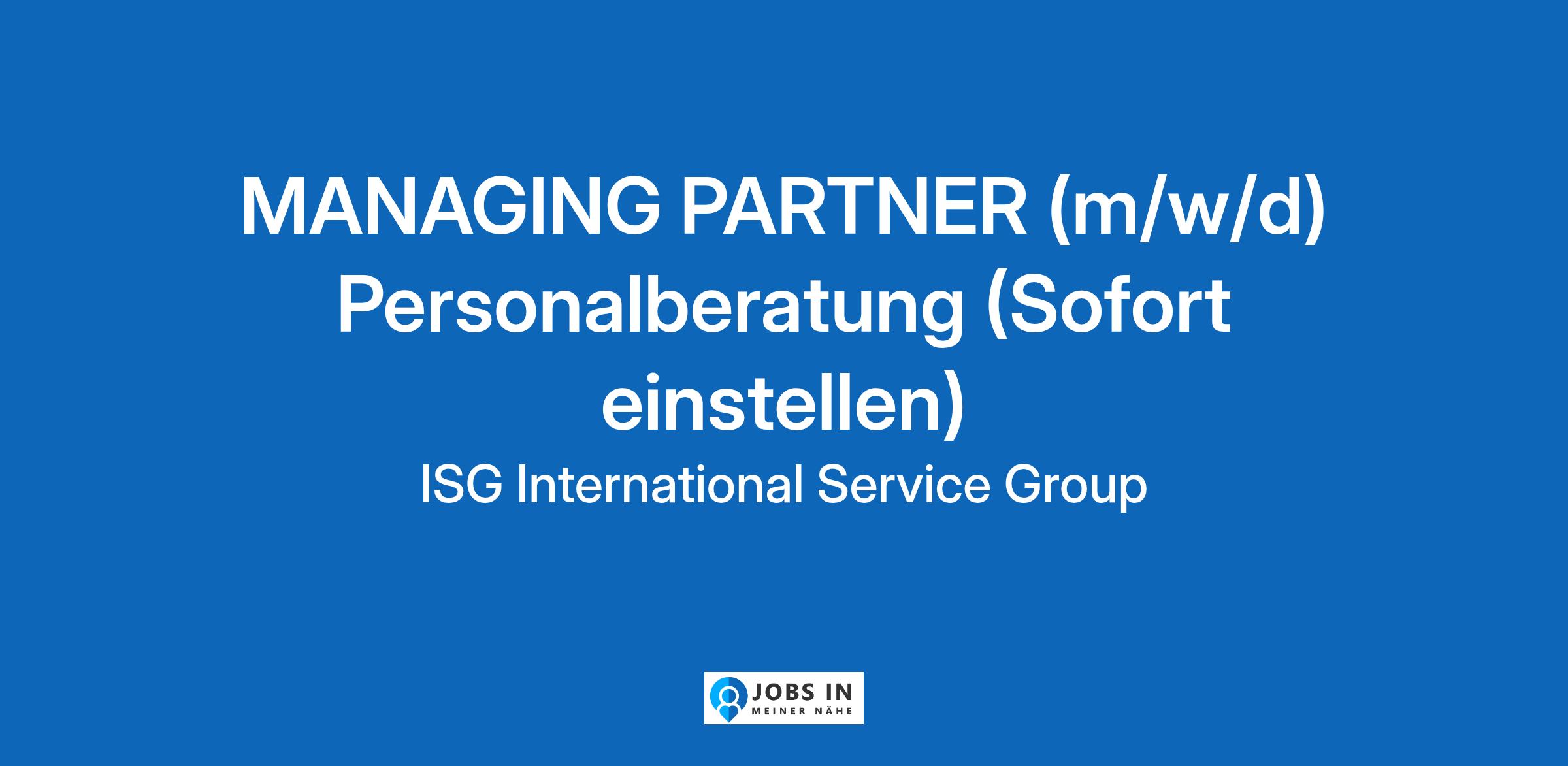 Join to apply for the MANAGING PARTNER (m/w/d) Personalberatung role at ISG International Service Group .