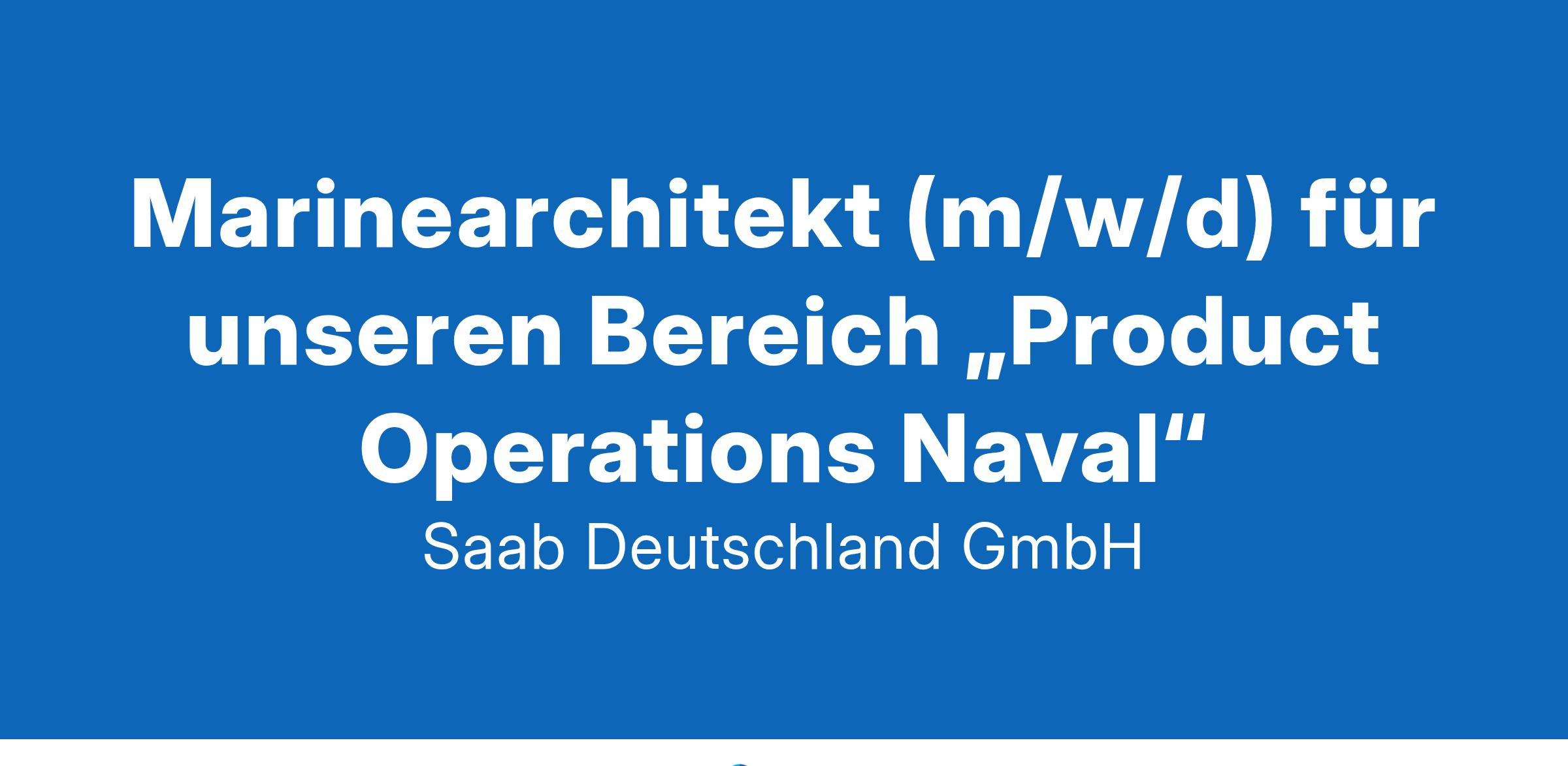 Marinearchitekt (m/w/d) für unseren Bereich „Product Operations Naval“ Saab Deutschland – wir stellen ein: Marinearchitekt (m/w/d) unbefristet in Vollzeit für unseren Bereich „Product Operations Naval“ in Bremen/Emden/Wilhelmshaven Nähere Informationen erhalten Sie auf unserer Homepage
