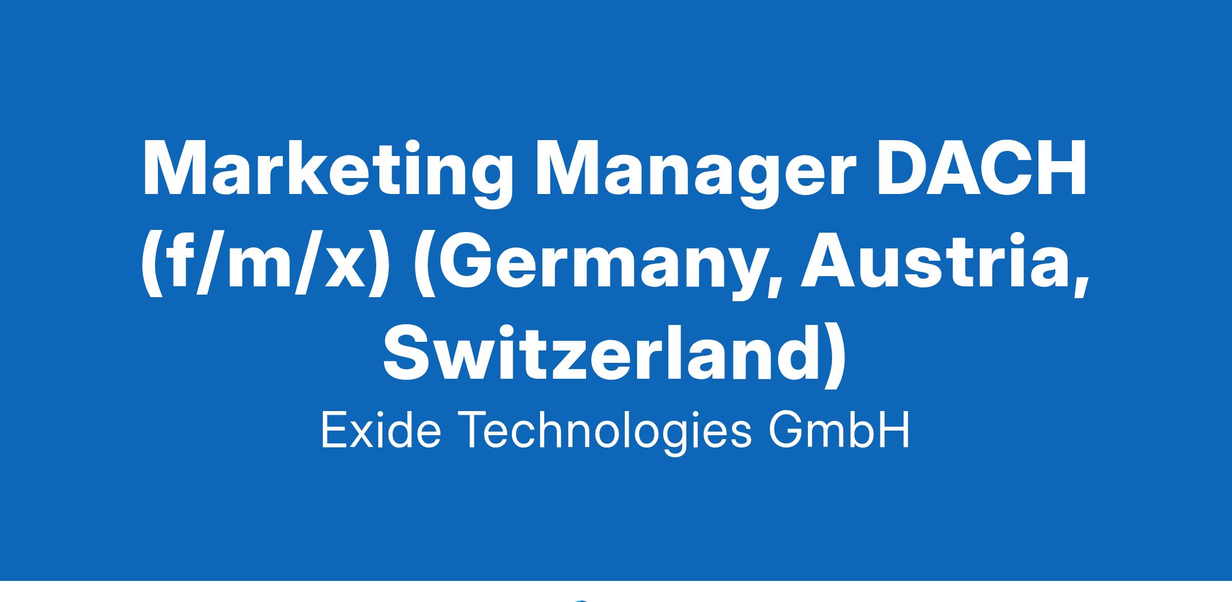 Energizing a new world with Exide Technologies Exide Technologies (www.exidegroup.com) is an internationally leading provider of innovative and sustainable battery storage solutions for automotive and industrial applications. With more than 135 years of experience, Exide has developed and globally marketed innovative batteries and systems, contributing to the energy transition and driving a cleaner future. Exide Technologies' culture and strategy are centred on recycling, sustainability, and environmental responsibility. The company has 11 manufacturing and 3 recycling facilities across Europe, ensuring resilience and a low CO2 footprint with a local supply chain. With a team of 5,000 employees, we provide €1.6bn energy storage solutions and services to customers worldwide, every year. Exide Technologies’ Automotive Division manufactures 12V batteries for all powertrain concepts, covering internal combustion to hybrid, and full electric vehicles. We offer lead-acid and lithium-ion batteries for light and commercial vehicles, motorcycles, boats, and more. We serve the OEMs and the Aftermarket with our and our customers’ top brands. For our growing Automotive division in Büdingen (near to Hanau / Frankfurt – Germany), we are looking for a Marketing Manager DACH (f/m/x) (Germany, Austria, Switzerland) The Marketing Manager (DACH) is part of the Marketing & Communications team and reports to the Global Director Marketing. The Marketing & Communications Team is responsible for the execution of the marketing and communications strategy and programs across our B2B and B2C channels in the Automotive and Industrial segments. The team is responsible for all cross-channel marketing activation as well as Brand Strategy and Corporate positioning. As a B2B and Trade Marketeer, you will handle the marketing & communication activities for brand awareness and commercial communication in DACH with focus on the automotive aftermarket segment. This includes, among others, local campaign development and event planning, lead generation, as well as local content and sales collateral curation/ creation. What will your daily responsibilities include in this role? Together with the Global Director Marketing: