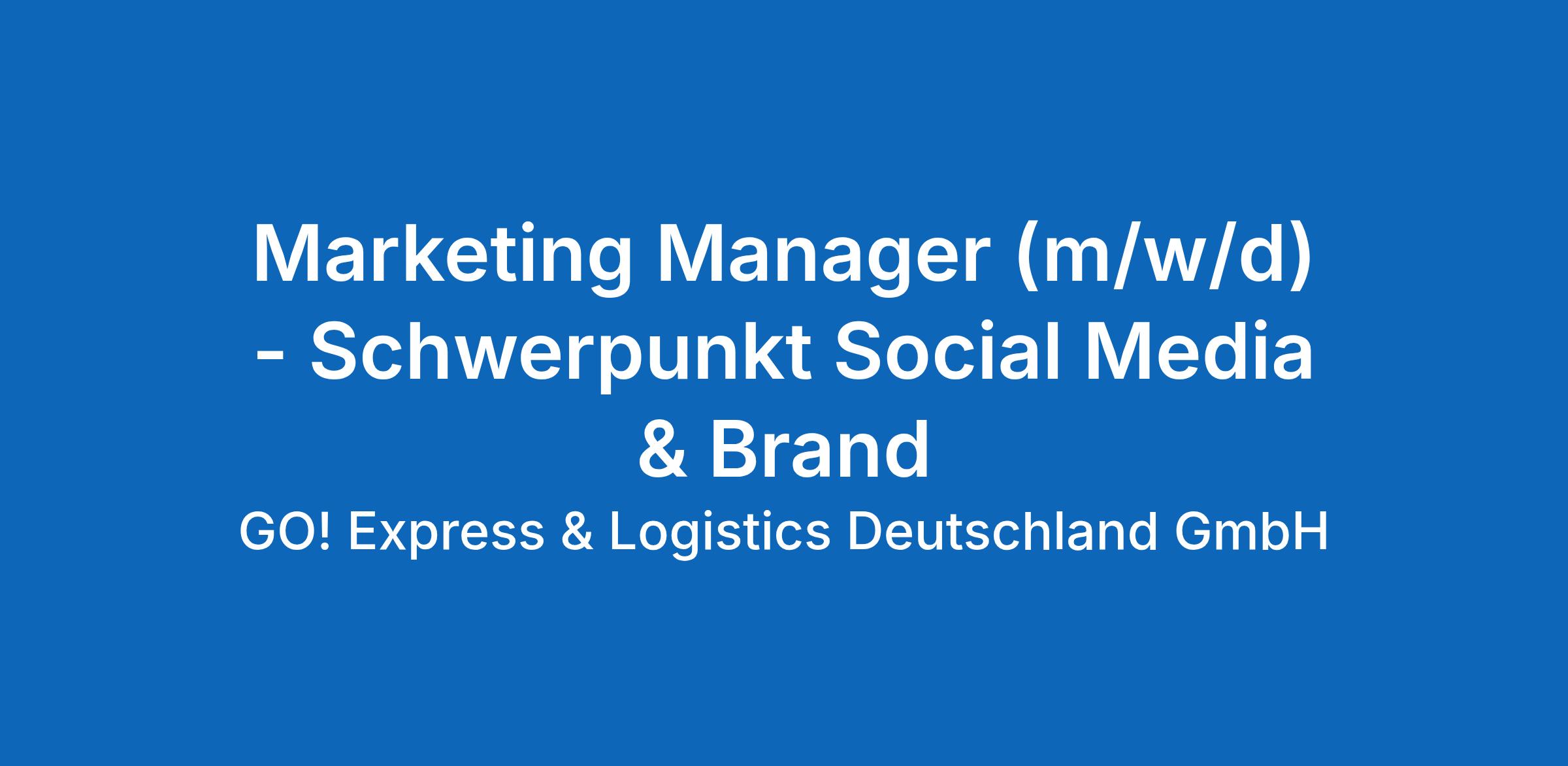 Marketing Manager (m/w/d) – Schwerpunkt Social Media & Brand