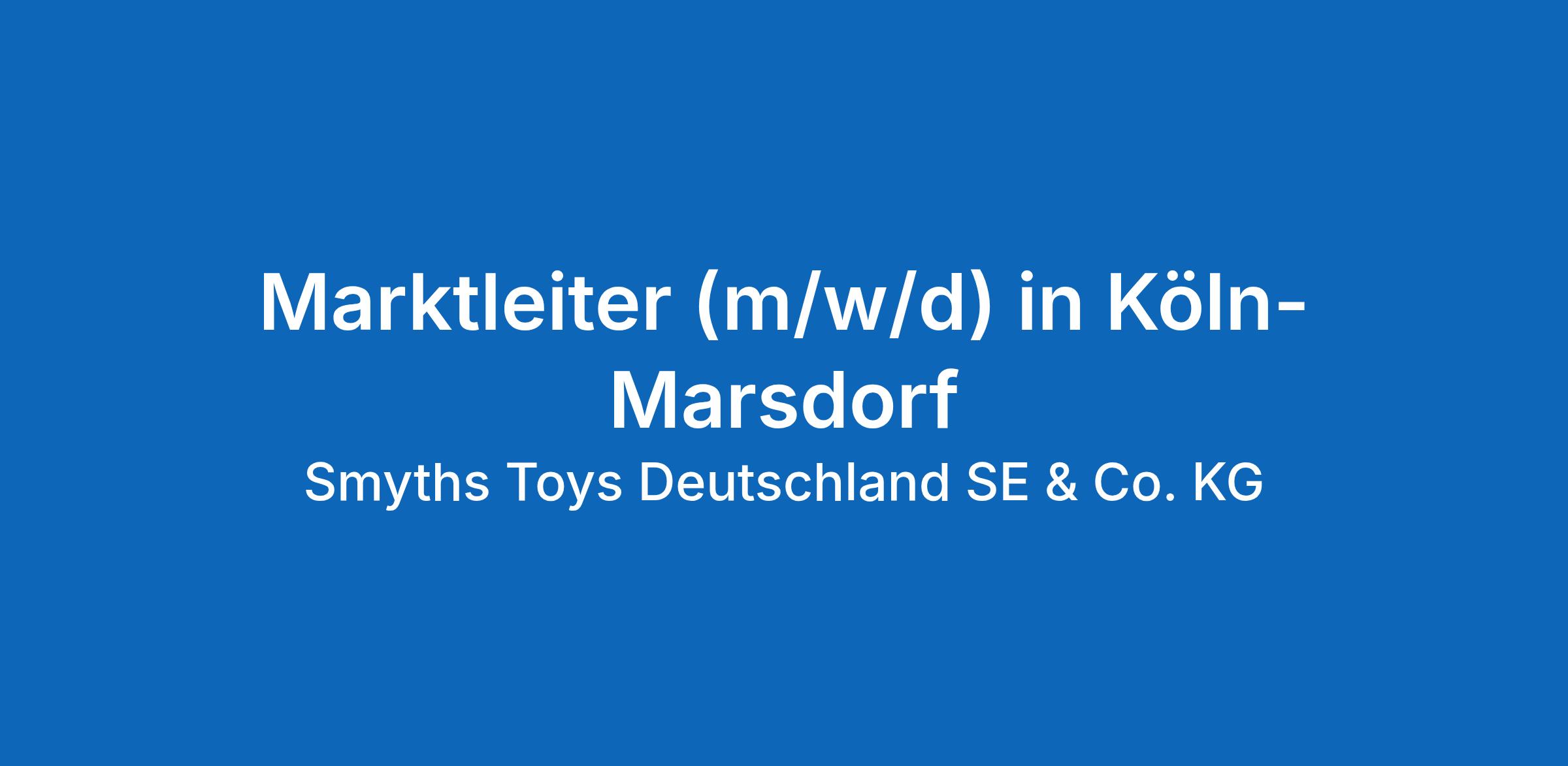 Setze Deine Erfahrungen und Talente ab sofort oder nach Absprache in Vollzeit bei Smyths Toys in der Marktleitung ein und übernimm die Verantwortung für unseren Store in Köln-Marsdorf!