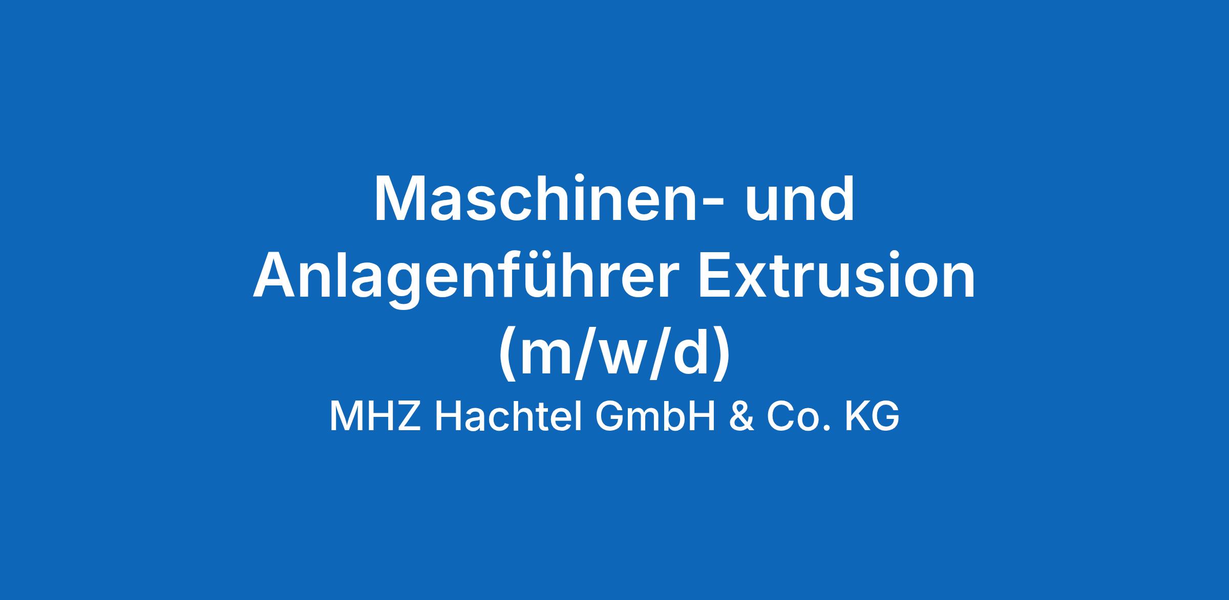Maschinen- und Anlagenführer Extrusion (m/w/d)