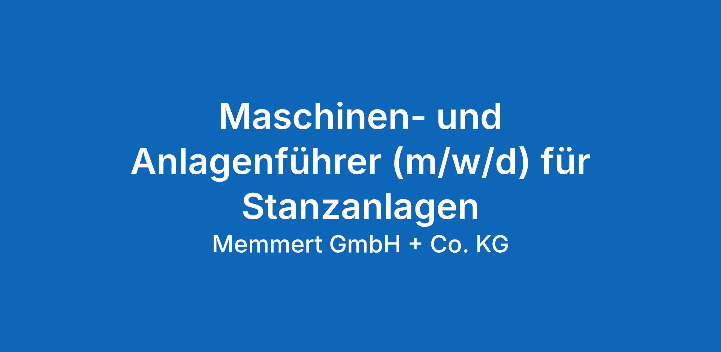 Maschinen- und Anlagenführer (m/w/d) für Stanzanlagen