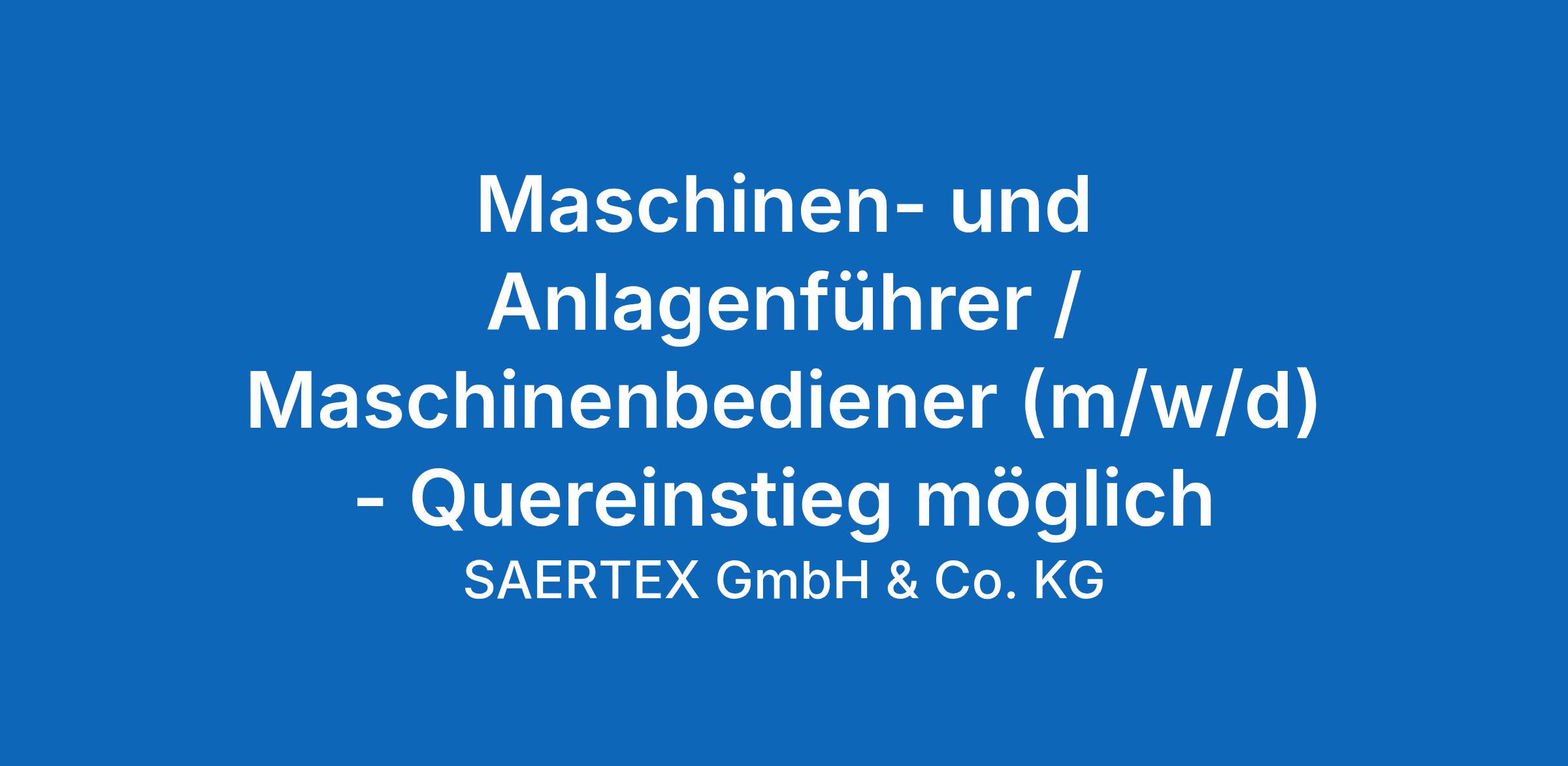 - Du bist motivierter Quereinsteiger (m/w/d) aus einem handwerklichen Umfeld? Wir lernen Dich zum vollwertigen Maschinenführer (m/w/d) an!