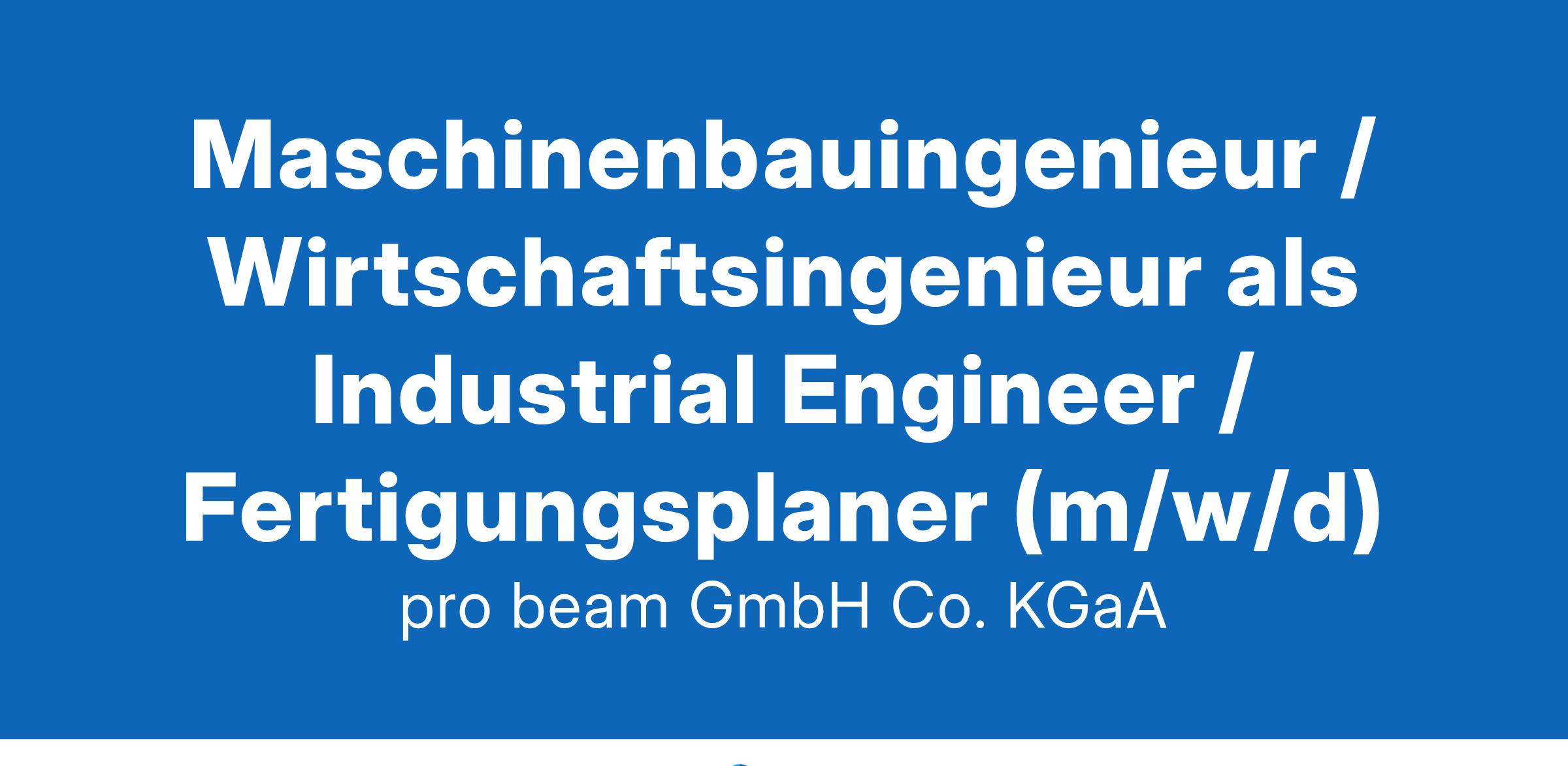 Über uns Creating the future together: Das ist der Leitgedanke der pro-beam Gruppe. Wir sind eines der weltweit führenden Unternehmen im Bereich der Elektronenstrahltechnologie und bewegen uns – vom Schweißen bis zur Additiven Fertigung – in einem komplexen technologischen Umfeld. Mit unseren Produkten und Dienstleistungen gestalten wir aktiv die Zukunft, ermöglichen sichere Flüge in den Weltraum, statten Millionen von Autos aus und sind Teil von spektakulären Großforschungsprojekten. Ihre Tätigkeit: Gestaltung wirtschaftlicher Herstellungsprozesse mit Fokus auf Schweißbaugruppen und Montage Erstellung von Arbeitsplänen und Festlegung von Fertigungsverfahren, Arbeitsabläufen und Betriebsmitteln Betreuung der Produktion, Koordinierung von Änderungen und Analyse von Fertigungsabweichungen Optimierung der Prozesslandschaft und Produktionsabläufe mittels LEAN-Methoden Mitwirkung an Materialflussanalysen, Layoutplanungen und der Einführung neuer Fertigungsorganisationen Einführung neuer Technologien und Verantwortung für die Auslegung und Beschaffung moderner Maschinen und Anlagen (Industrie 4.0) Managen des internen und externen Werkzeug- und Vorrichtungsbaus Ihr Profil: Abgeschlossenes technisches Studium (u.a. Maschinenbau, Produktionstechnik, Wirtschaftsingenieurwesen) oder vergleichbare Qualifikation Berufserfahrung im Produktionsbereich eines mittelständischen Unternehmens (Einzel- und Kleinserienfertigung, Schweiß- und Montagebereich) Kenntnisse in LEAN-Methoden sowie eine REFA-Ausbildung sind von Vorteil Aufgeschlossene Haltung gegenüber modernen Produktionsstrukturen und agilen Arbeitsmethoden Gute Kenntnisse im Umgang mit ERP-Systemen, insbesondere SAP PP Verhandlungssichere Deutschkenntnisse, sehr gute Englischkenntnisse Systematische Arbeitsweise, Entscheidungskompetenz und ein ausgeprägtes Kostenbewusstsein Das bieten wir Ihnen: Mobiles Arbeiten Gleitende Arbeitszeiten 30 Tage Urlaub Weihnachts-/Urlaubsgeld / Bonus Vollständige Arbeitszeiterfassung und Freizeitausgleich Zuschuss zum Mittagessen Obst- und Gemüsekorb Persönliche Weiterbildungsmöglichkeiten Betriebliche Altersvorsorge Attraktives Mitarbeiterrabattprogramm Firmeneigene Parkplätze / Tiefgarage