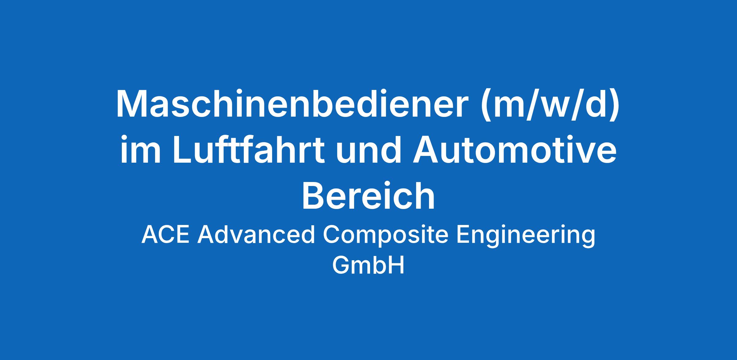 Maschinenbediener (m/w/d) im Luftfahrt und Automotive Bereich