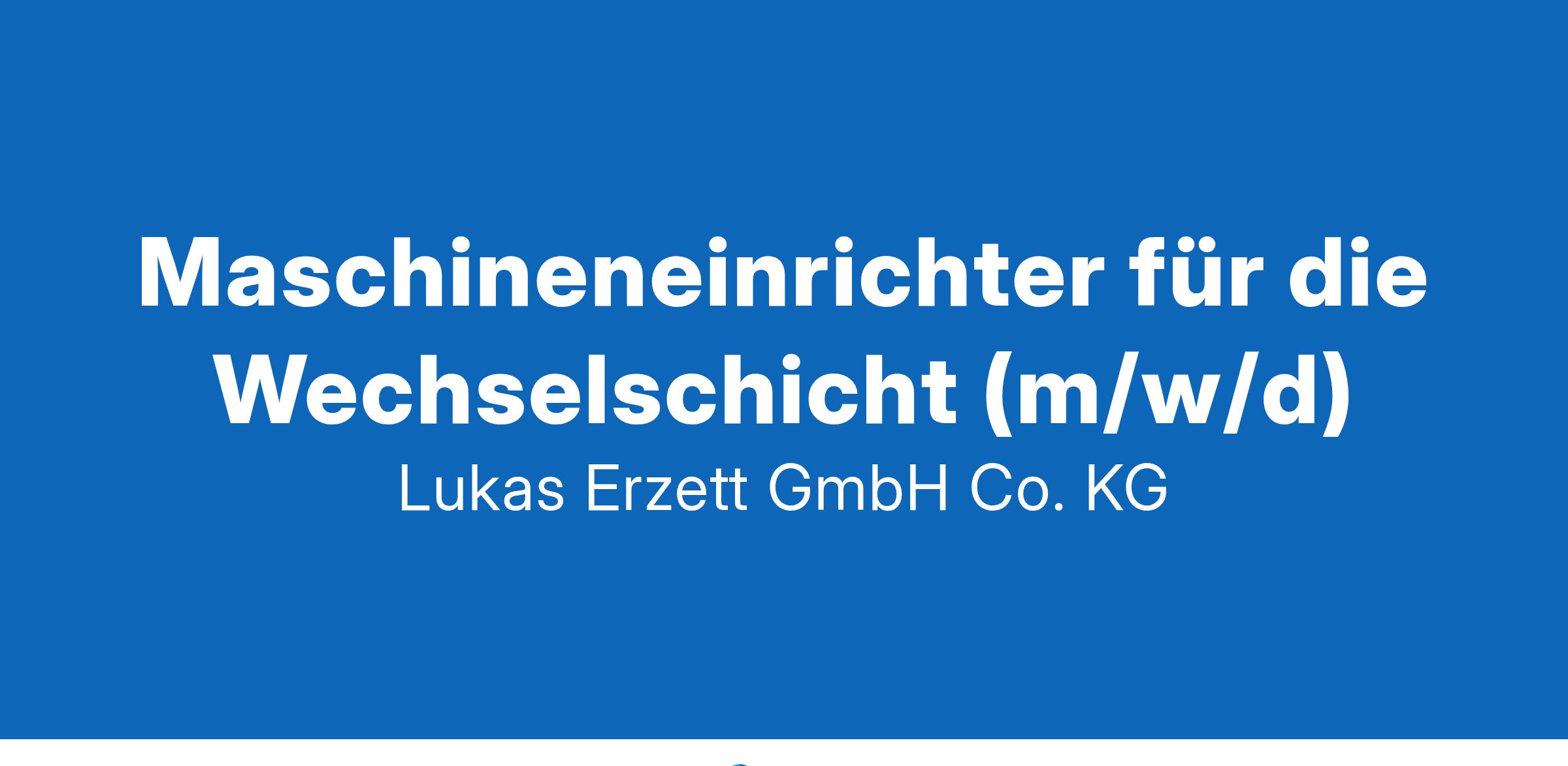 ALS INNOVATIONSTREIBER BIETET LUKAS WELTWEIT LEISTUNGSSTARKE WERKZEUGLÖSUNGEN – UND DAS ALS FAMILIENUNTERNEHMEN SEIT ÜBER 85 JAHREN! Zum nächstmöglichen Eintrittstermin und zur unbefristeten Anstellung suchen wir eine engagierte Persönlichkeit als: MASCHINENEINRICHTER FÜR DIE WECHSELSCHICHT M/W/D (Früh- und Spätschicht zwischen 06:00 Uhr und 21:30 Uhr) IHRE AUFGABEN: Einrichten, Bedienen und Instandhalten von Fertigungsautomaten Einlagern und Bereitstellen von Rohmaterialien Führen von Flurförderfahrzeugen IHRE KOMPETENZEN: erfolgreich abgeschlossene technische Ausbildung z. B. als Maschinen- und Anlagenführer oder Industriemechaniker technisches Verständnis für das Bedienen von Fertigungsautomaten Staplerschein Flexibilität und Bereitschaft zur Schichtarbeit Zuverlässigkeit, Teamfähigkeit sowie Belastbarkeit UNSERE BENEFITS: 37-Stunden-Woche und 30 Tage Urlaub Sonderzahlungen und Ergebnisbeteiligungen Zuschüsse zur vermögenswirksamen Leistung und betrieblichen Altersvorsorge Mitarbeiterrabatte bei ausgewählten Top-Marken zusätzliches Fahrgeld und E-Bike-Leasing betriebliche Veranstaltungen sowie Betriebsfeste bewerbung@lukas-erzett.de Fon +49 2263 84-375 JETZT IHRE LUKAS- KARRIERE STARTEN: Next level solutions. LUKAS-ERZETT GmbH & Co. KG Gebrüder-Lukas-Straße 1 | 51766 Engelskirchen