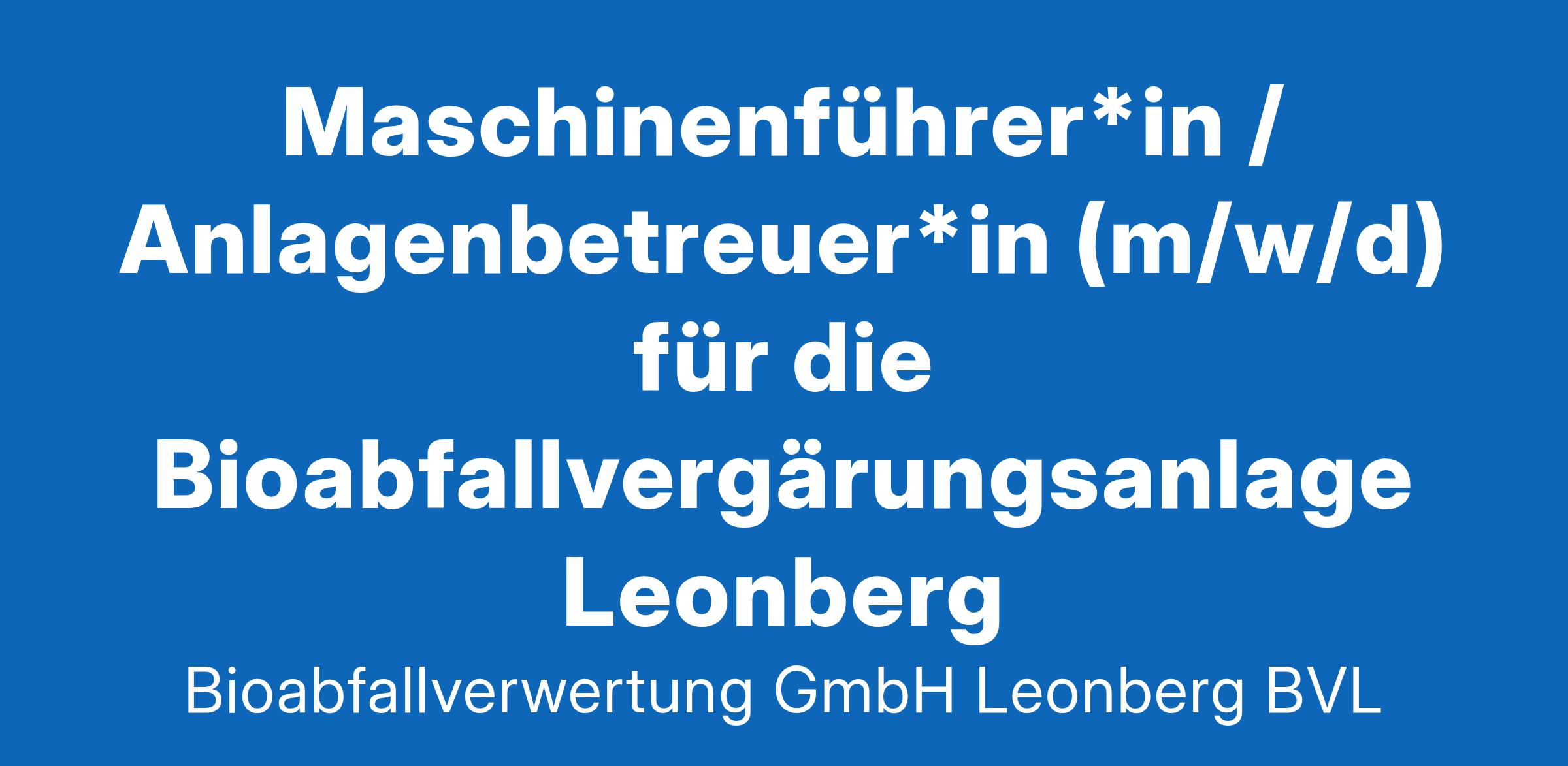 Maschinenführer*in / Anlagenbetreuer*in (m/w/d) für die Bioabfallvergärungsanlage Leonberg Leonberg Viel sicherer, viel ausgeglichener, viel spannender – die JoBBs beim Landkreis Böblingen bieten unseren rund 2.200 multinationalen Mitarbeiterinnen und Mitarbeitern viel mehr fürs Leben. Die Aufgaben sind abwechslungsreich, die Arbeitszeiten flexibel, die Fortbildungsmöglichkeiten attraktiv und die technische Ausstattung ist top. In diesem attraktiven, krisensicheren Umfeld können sich Talente entfalten und gemeinsam den Landkreis besser machen. Die Bioabfallverwertung GmbH Leonberg (BVL) wurde am 5. Juni 2019 für den Bau und Betrieb von Bioabfallverarbeitungsanlagen gegründet. Gesellschafter der GmbH sind mit einem Gesellschaftsanteil von 65 % der Landkreis Böblingen, mit 35 % der Landkreis Esslingen. Die somit rein kommunal getragene GmbH realisiert derzeit den Wiederaufbau der im September 2019 abgebrannten Vergärungsanlage in Leonberg mit einer Verarbeitungskapazität von jährlich bis zu 60.000 Tonnen Bioabfällen und 12.000 Tonnen Grünabfällen aus den Landkreisen Böblingen und Esslingen. Die Inbetriebnahme der Anlage erfolgt Ende 2024. Werden Sie Teil unseres Teams bei der Bioabfallverwertung GmbH Leonberg. Zum nächstmöglichen Termin und zum 01.07.2025 bieten wir jeweils einen JoBB als Maschinenführer*in / Anlagenbetreuer*in (m/w/d) für die Bioabfallvergärungsanlage Leonberg in einem Zwei-Schicht-Betrieb (früh und spät) an. Ihre Aufgaben sind insbesondere: Bedienung des Radladers zum Beschicken der Anlage und Verladen von Gärresten Bedienung der Anlage mit Störungsbeseitigung und Dokumentation Wartung, Reparatur sowie Reinigung der Maschinen, Geräte und der Anlagentechnik Bereitschaft zu Wochenend- und Schichtdienst sowie Rufbereitschaft Ihre Qualifikationen: Handwerkliche Berufsausbildung in einem technischen Beruf (Anlagenfahrer*in [m/w/d], Schlosser*in [m/w/d], Industriemechaniker*in [m/w/d], Anlagenmechaniker*in [m/w/d] SHK, Elektriker*in [m/w/d], Mechatroniker*in [m/w/d] oder vergleichbar) Technisches Verständnis und Erfahrung in der Durchführung von Reparaturen und Wartungen an technischen Anlagen Erfahrung als Maschinenführer*in / Anlagenbetreuer*in (m/w/d) vorteilhaft Zuverlässigkeit, Teamfähigkeit, Verantwortungsbewusstsein und Flexibilität Grundkenntnisse in MS Office Besitz des Führerscheins der Klasse B (alte Klasse 3) Wir bieten: Viel mehr Abwechslung: verantwortungsvolle Tätigkeit in einem kommunal getragenen Unternehmen Viel mehr Work-Life-Balance Viel mehr Stabilität: Vergütung nach Entgeltgruppe 7 TVöD; die Eingruppierung nach Entgeltgruppe 7 TVöD erfolgt bei Vorliegen der persönlichen Voraussetzungen entsprechend der Entgeltordnung Viel mehr Sicherheit in einer systemrelevanten Branche mit langfristiger Perspektive nach dem Tarifvertrag für die öffentliche Verwaltung (TVöD); die Stellen sind unbefristet Beschäftigungsumfang 100 %, die Stellen sind grundsätzlich teilbar; vorgesehen ist ein Zwei-Schicht-Betrieb (früh und spät) mit mehreren Mitarbeitenden Zulagen nach TVöD Umfassende Einarbeitung bereits in der Inbetriebnahmephase Bewerbungen von schwerbehinderten Menschen werden bei gleicher Eignung besonders berücksichtigt. Wir freuen uns auf Ihre aussagekräftige Onlinebewerbung, die Sie uns bitte bis spätestens 16.02.2025 über unser Bewerberportal zusenden. Haben Sie noch Fragen? Herr Beckstein Betriebsleiter Bioabfallvergärungsanlage Leonberg Tel. 07031 663-1048