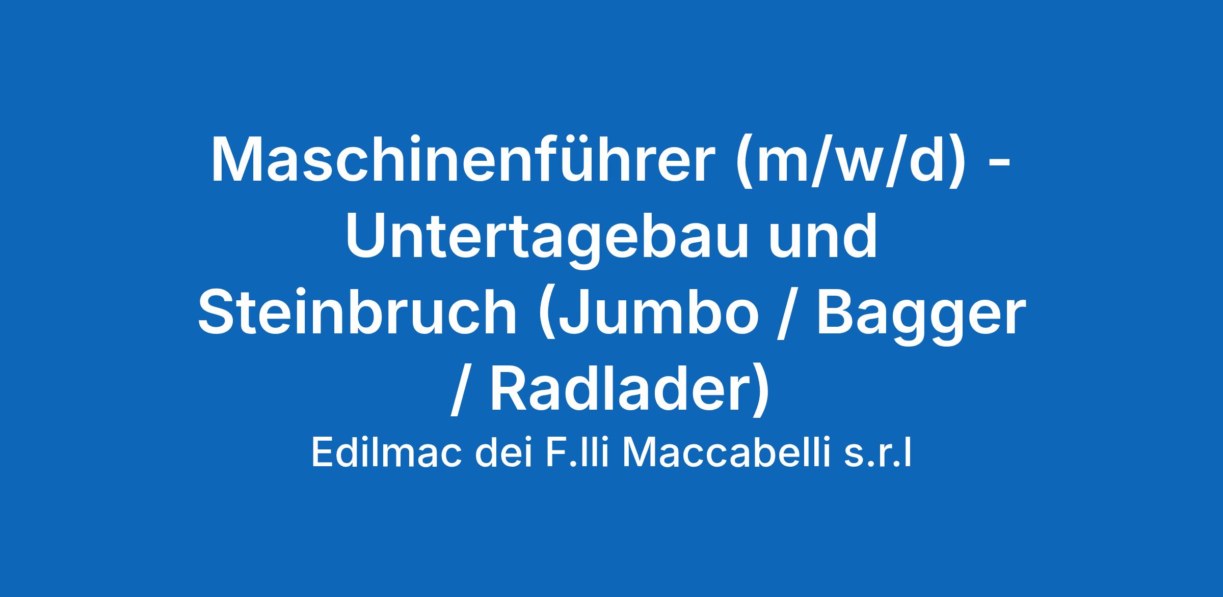 Für ein neues Projekt im Raum Düsseldorf suchen wir erfahrene Fachkräfte im Bereich Untertagebau und Steinbruch. Je nach Qualifikation und Erfahrung übernehmen Sie Bohr- oder Baggerarbeiten unter Tage und tragen aktiv zur sicheren und effizienten Umsetzung des Abbauplans bei.