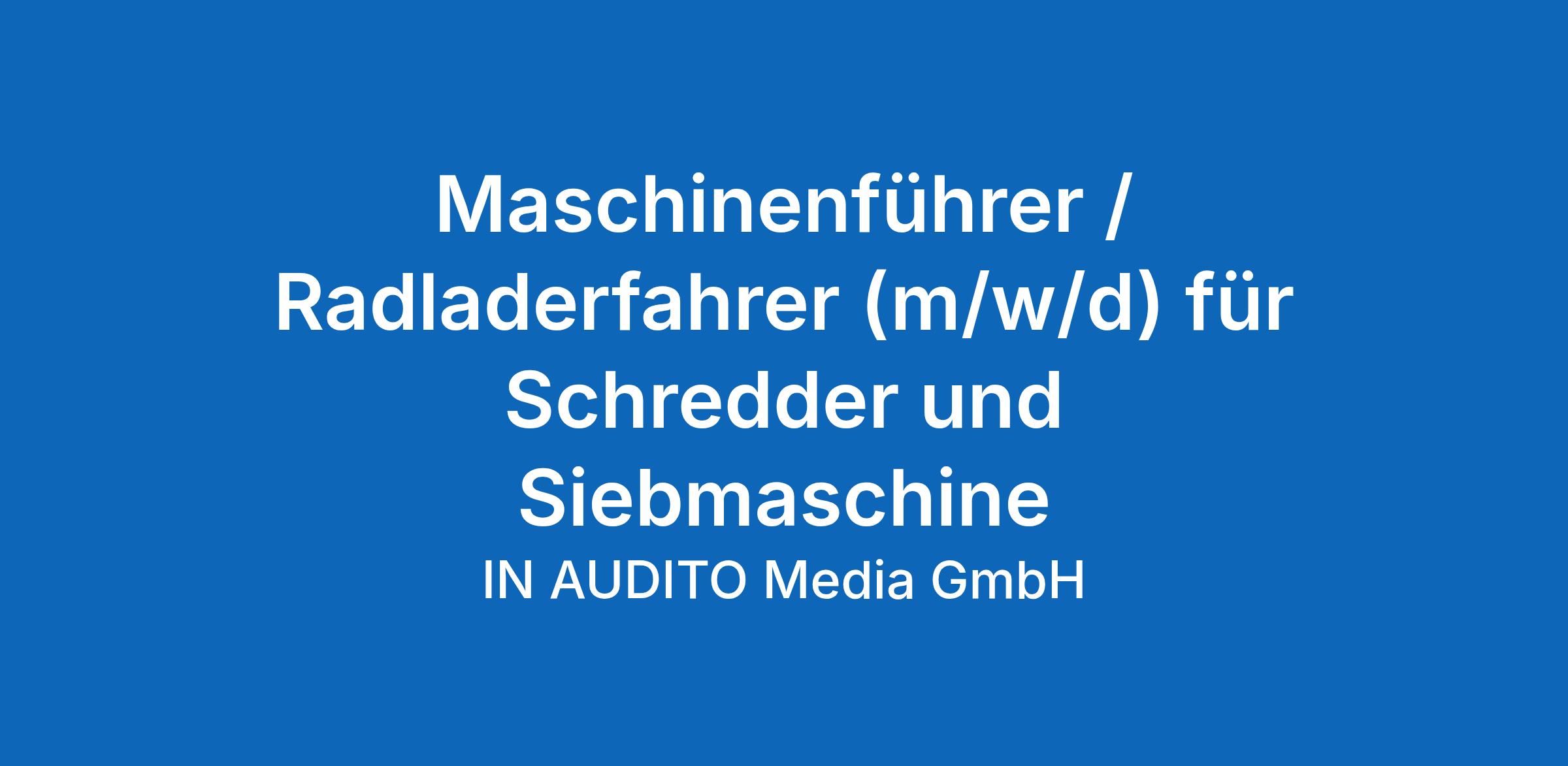 Maschinenführer/Radladerfahrer (m/w/d) für Schredder und Siebmaschine