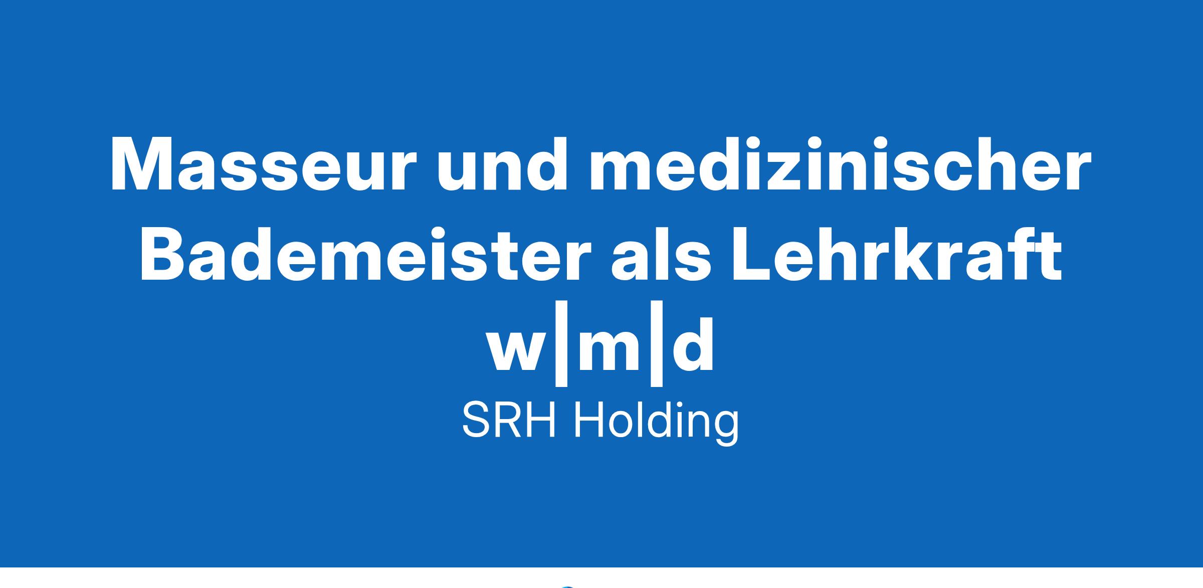 Die SRH ist ein Stiftungsunternehmen mit Angeboten in den Bereichen Bildung und Gesundheit. Die mehr als 17 000 Mitarbeiter:innen der SRH begleiten jährlich über 1,2 Millionen Menschen auf ihren individuellen Lebenswegen. Seit der Gründung 1966 setzt sie sich für die Weiterentwicklung des Bildungs- und Gesundheitswesens ein. Die SRH ist sich ihrer gesellschaftlichen Verantwortung seit jeher bewusst. Um für noch mehr Menschen neue Lebenschancen zu eröffnen, reinvestiert sie ihre Gewinne in die Zukunftsmärkte Bildung und Gesundheit. Sie gehört zu den Innovationsführern in diesen Bereichen und gestaltet gesellschaftliche Debatten aktiv mit – für eine menschliche und nachhaltige Gesellschaft.Aufgabe:Lehre | Unterricht in den Fächern Klassische Massagetherapie, Manuelle Lymphdrainage, Fußreflexzonen, Sonderformen der Massagetherapie und HydrotherapieBetreuung | Sie betreuen und unterstützen unsere Schüler:innen in der praktischen Ausbildung in verschiedenen KooperationseinrichtungenLernumfeld | Sie fördern ein interaktives und praxisorientiertes LernumfeldPrüfung | Vorbereitung, Durchführung und Bewertung von PrüfungenTeam | Sie arbeiten eng mit dem gesamten Team der Schule zusammen, um die Qualität der Ausbildung zu gewährleistenEntwicklung | Aktive Weiterentwicklung des Unterrichts und der KompetenzvermittlungProfil:Qualifikation | Abgeschlossene Ausbildung als Masseur und medizinischer Bademeister, Alternativ verkürzte Ausbildung zum PhysiotherapeutenErfahrung | Mindestens 2 Jahre Berufserfahrung als Masseur und medizinischer BademeisterArbeitsweise | Kunden- und dienstleistungsorientiertes Denken und HandelnSoft Skills | Flexibilität, Kommunikationsfähigkeit, sowie ein hohes Maß an Selbstorganisationnice2have | Pädagogische Qualifikation und Lehrerfahrung
