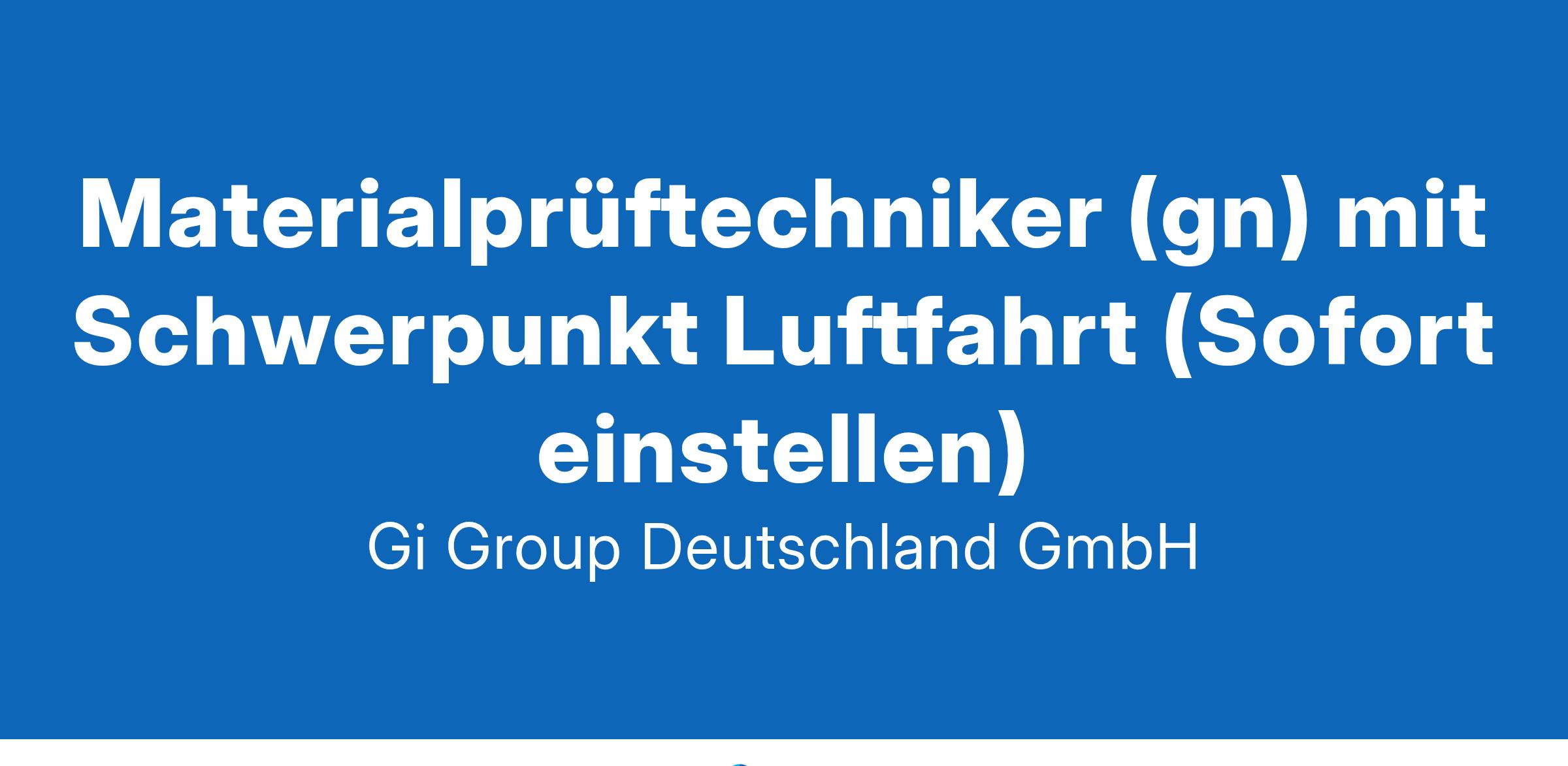 Materialprüftechniker (gn) mit Schwerpunkt Luftfahrt (Sofort einstellen)