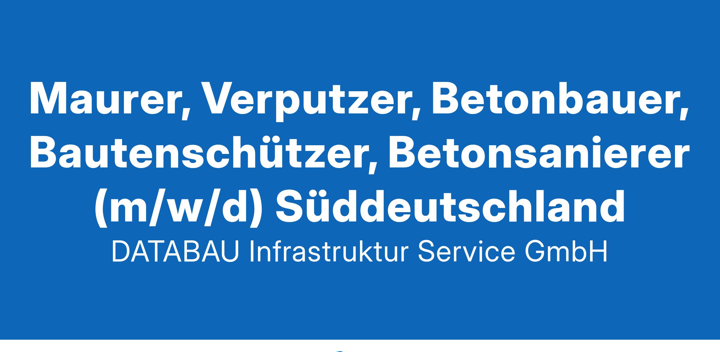 WIR SUCHEN Maurer, Verputzer, Betonbauer, Bautenschützer, Betonsanierer (m/w/d) STANDORTE: Bundesweit (Heilbronn, Ludwigsburg, Karlsruhe, Esslingen, Memmingen, Ravensburg, Saarbrücken) Die DATABAU Infrastruktur & Service GmbH ist Teil einer führenden Holdinggesellschaft in der Telekommunikationsbranche. Seit über 20 Jahren konzentrieren wir uns auf die Überprüfung, Instandsetzung und den Neubau von Ingenieurbauwerken im Auftrag namhafter Telekommunikationsdienstleister und anderer Carrier in ganz Deutschland. Unsere Tätigkeiten reichen von der gründlichen Inspektion der Kabelschächte über die fachkundige Sanierung von Beschädigungen bis hin zum kompletten Austausch veralteter Komponenten. Für unsere deutschlandweiten Projekte suchen wir zum nächstmöglichen Zeitpunkt eine Verstärkung für unser dynamisches und motiviertes Team. DAS SIND IHRE AUFGABEN Öffnen und Überprüfen von Kabelschächten unserer Auftraggeber Kleinere Arbeiten als Team im Schacht Begutachtung und Bewertung von Kabelschächten DAS BRINGEN SIE MIT Kundenorientiertes und zuverlässiges Handeln Teamfähigkeit und Motivationsstärke SIVV-Schein wünschenswert oder Bereitschaft zur Weiterbildung für SIVV-Schein Bundesweite Montagebereitschaft (i. d. R. Mo-Do) Quereinsteiger sind bei uns herzlich willkommen Führerschein der Klasse B DAS BIETEN WIR IHNEN Einen zukunftssicheren Arbeitsplatz in einer wachsenden Unternehmensgruppe Monatlicher Tankgutschein 30 Tage Erholungsurlaub Flexible Arbeitszeiten Sie arbeiten in der Regel 4 Tage/Woche, lediglich an einem Freitag im Monat Übertarifliche Bezahlung Ein gutes Arbeitsklima mit freundlichen und kompetenten Arbeitskollegen Eine betriebliche Altersvorsorge Weiterbildungsmöglichkeiten Fühlen Sie sich angesprochen? Dann bewerben Sie sich bitte per E-Mail an bewerbung.infrastruktur[AT]databau.com mit folgenden Unterlagen: Anschreiben, Lebenslauf, Zeugnisse und Ihrem nächstmöglichen Eintrittstermin. DATABAU Infrastruktur & Service GmbH