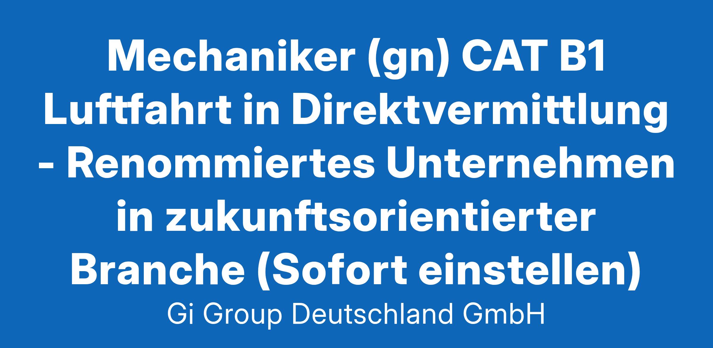 Mechaniker (gn) CAT B1 Luftfahrt in Direktvermittlung ab sofort in Vollzeit in Hamburg Die Gi Group ist ein international agierender Personaldienstleister mit mehr als 500 Standorten in 40 Ländern. Unser Kunde ist ein renommiertes und zukunftsorientiertes Unternehmen aus der Luftfahrt. Deine Aufgaben Instandhaltungs- und Modifikationsarbeiten durchführen und deren ordnungsgemäße Durchführung bescheinigen Zweitkontrolle, Stichproben, End- und Vollständigkeitskontrollen durchführen und bestätigen Durchführung der Fehlersuche, Behebungsmaßnahmen festlegen und Dokumentationen im erforderlichen Rahmen vornehmen Mitarbeitende mit niedrigerer Instandhaltungsberechtigung fachlich anweisen und die ordnungsgemäße Durchführung der Instandhaltungsarbeiten koordinieren und bestätigen Spezifische Funktionen und Sonderaufgaben übernehmen Dein Profil Eine abgeschlossene technische Berufsausbildung und Erfahrung als CAT B1 Mehrjährige Berufserfahrung im Bereich der Flugzeuginstandhaltung mit allen im Fachgebiet erforderlichen Berechtigungen Sehr gute Kenntnisse der Instandhaltungsvorschriften des Internationalen Luftrechts Mindestens zwei externe abgeschlossene Fachlehrgänge in Steuerungstechnik Gute Kenntnisse in der Zusammenwirkung von elektrischen und mechanischen Komponenten Tank-Tauglichkeit ist wünschenswert Gute Englisch- und EDV-Kenntnisse Klare mündliche und schriftliche Ausdrucksweise Reisebreitschaft im In- und Ausland Das bietet unser Kunde Urlaubs- und Weihnachtsgeld sowie eine Gewinnbeteiligung Flexible Arbeitszeiten (Gleitzeit, keine Schichtarbeit) und 30 Tage Urlaub Flugvergünstigungen, Einkaufsrabatte in Geschäften und Jobrad-Leasing Kostenloses Parken, betriebliche Altersvorsorge und Verpflegungszuschuss für die Kantine Deine Bewerbung Für Deine Bewerbung als Mechaniker klicke bitte einfach auf „Jetzt bewerben“. Dort kannst Du Deine Kontaktdaten eingeben sowie Deinen Lebenslauf und Deine Bewerbungsunterlagen hochladen. Du benötigst dafür nur ca. 1 Minute. Dein zuständiger Personaldisponent wird sich bei Dir schnellstmöglich melden. Gerne kannst Du uns auch Deine Bewerbungsunterlagen per E-Mail zusenden. Wir freuen uns auf Deine Bewerbung! Unsere Stellenangebote richten sich an Arbeitssuchende jeglichen Geschlechts. (gn) = geschlechtsneutral. Kontakt Gi Group Recruiting Team