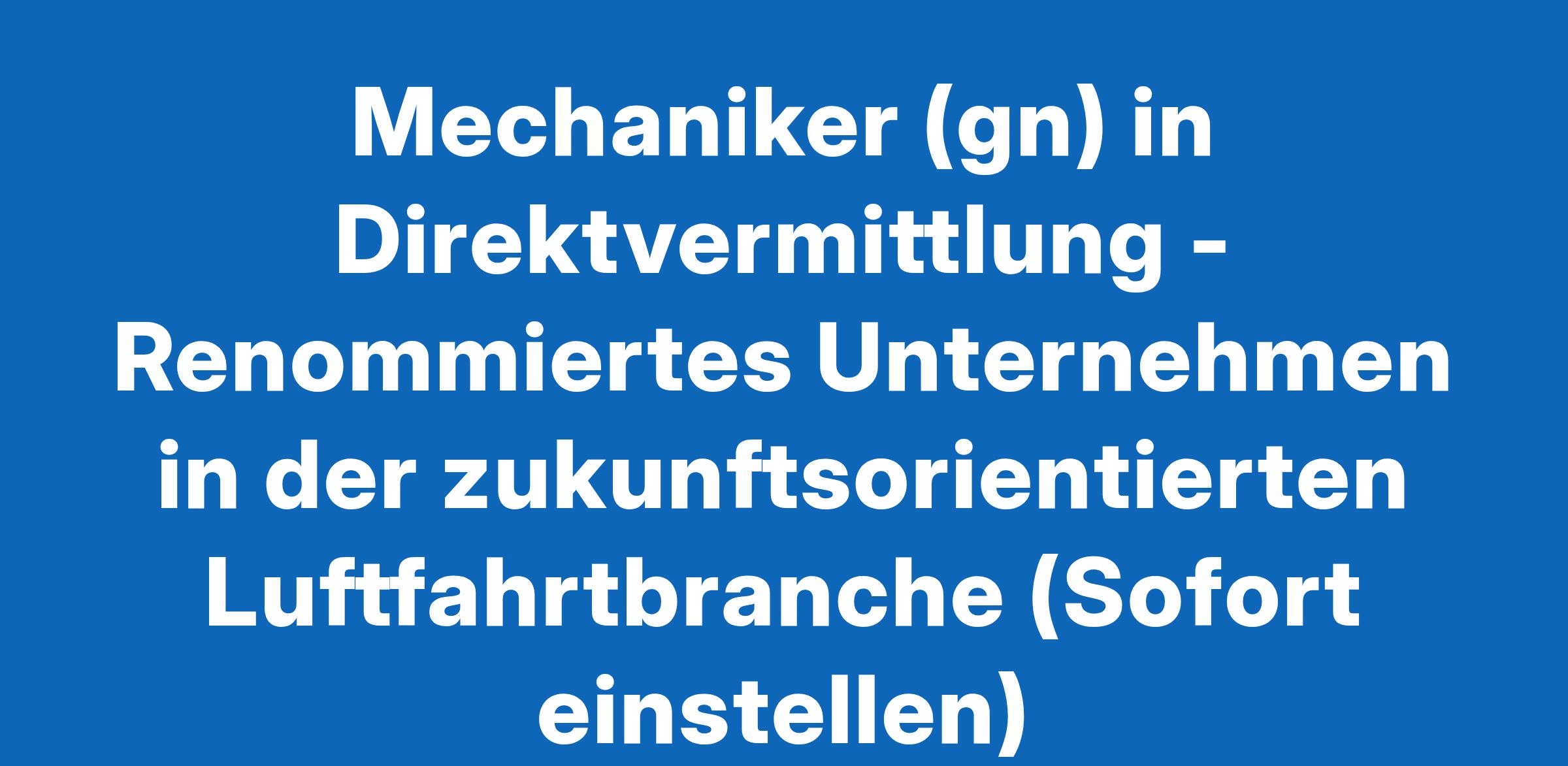 Mechaniker (gn) in Direktvermittlung - Renommiertes Unternehmen in der zukunftsorientierten Luftfahrtbranche (Sofort einstellen)