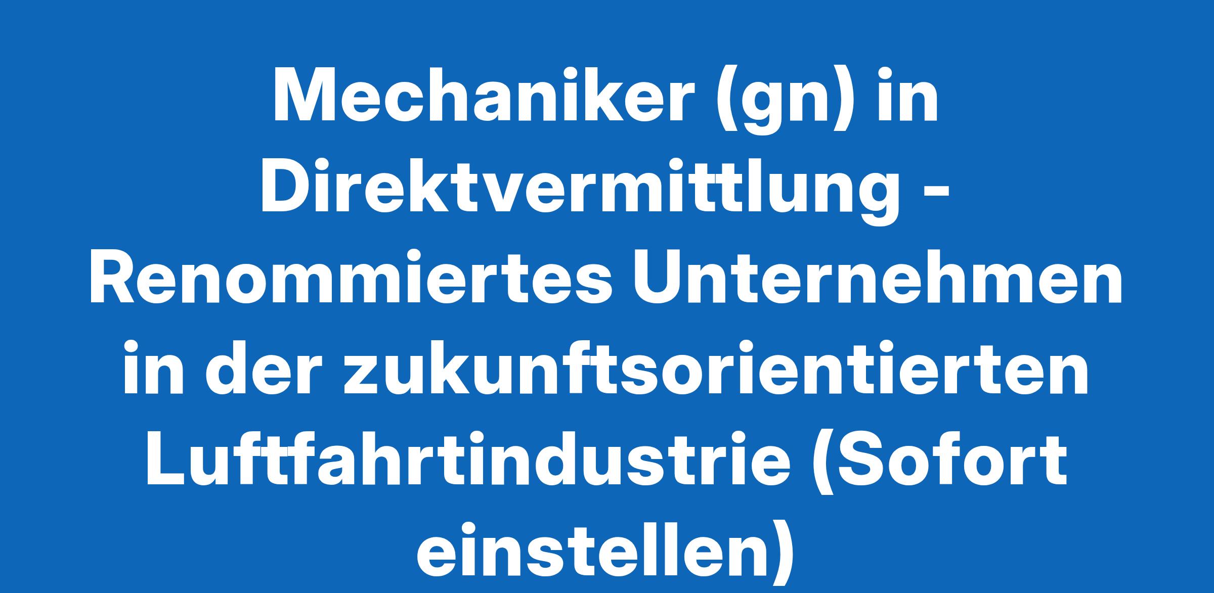 Mechaniker (gn) in Direktvermittlung - Renommiertes Unternehmen in der zukunftsorientierten Luftfahrtindustrie (Sofort einstellen)