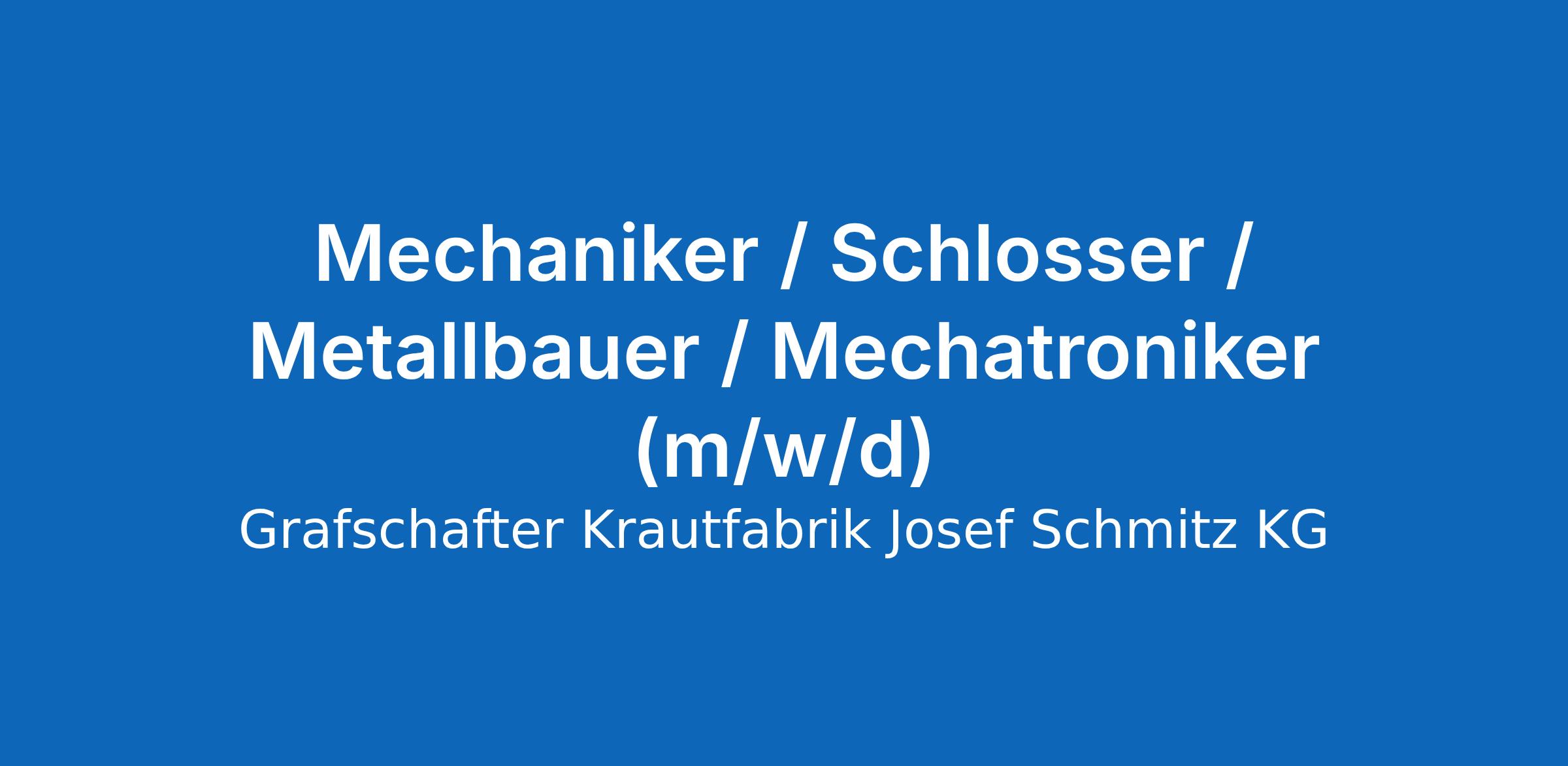 Mechaniker / Schlosser / Metallbauer / Mechatroniker (m/w/d)