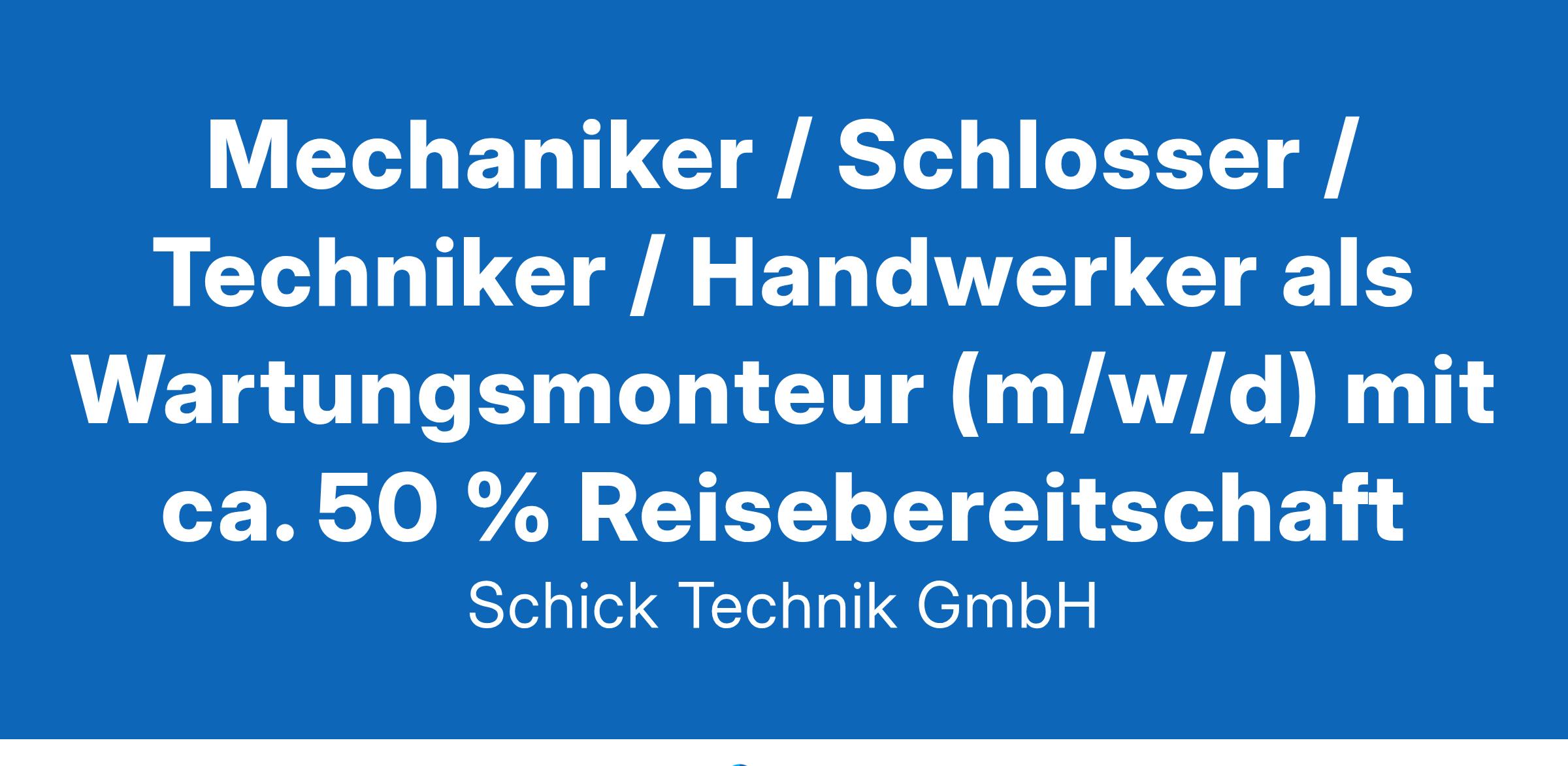 Mechaniker / Schlosser / Techniker / Handwerker als Wartungsmonteur (m/w/d) mit ca. 50 % Reisebereitschaft