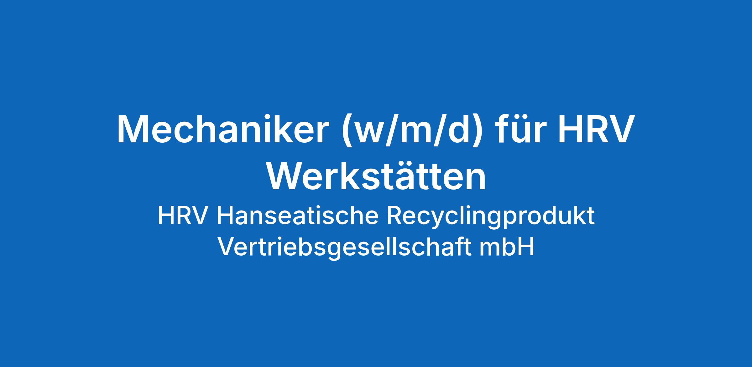 Mechaniker (w/m/d) für HRV Werkstätten