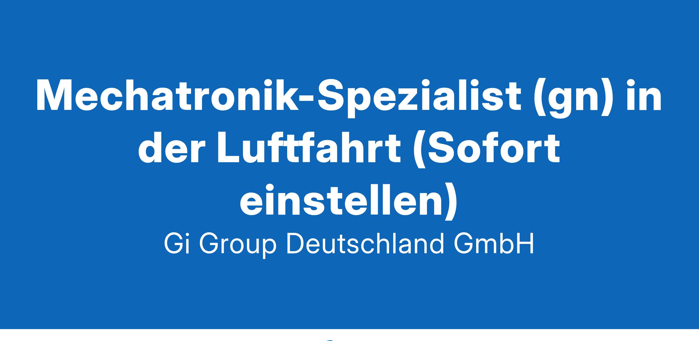 Mechatroniker (gn) im Flugzeugbau ab sofort in Vollzeit in Hamburg im Rahmen der Direktvermittlung  Die Gi Group ist ein international agierender Personaldienstleister mit mehr als 500 Standorten in 40 Ländern. Unser Kunde ist ein renommiertes und zukunftsorientiertes Unternehmen aus der Luftfahrt. Deine Aufgaben Ausführung von Reparaturen an elektromechanischen Bauteilen und Geräten  Fehlerdiagnosen an elektromechanischen Fluggeräten oder Baugruppen unter Anwendung von Messgeräten, Test- und Prüfeinrichtungen durchführen   Mit technischen Unterlagen arbeiten und die Dokumentation entsprechend pflegen Dein Profil Eine abgeschlossene Berufsausbildung in einem luftfahrttechnischen Bereich, z.B. Fluggerätelektronik Alternativ ist eine abgeschlossene Berufsausbildung in einem Beruf mit Schwerpunkt Mechatronik, z.B. Mechatroniker, Elektromechaniker oder eine gleichwertige Qualifikation wünschenswert Fachkenntnisse in der Wartung, Instandhaltung und Montage  Bereitschaft zum Erwerb fehlender Qualifikationen sowie zu berufsbezogener Weiterbildung im Flugzeugbau Gute Englischkenntnisse Unser Angebot Urlaubs- und Weihnachtsgeld sowie eine Gewinnbeteiligung  Flexible Arbeitszeiten (Gleitzeit, keine Schichtarbeit) und 30 Tage Urlaub  Flugvergünstigungen, Einkaufsrabatte in Geschäften und Jobrad-Leasing  Kostenloses Parken, betriebliche Altersvorsorge und Verpflegungszuschuss für die Kantine  Deine Bewerbung Für Deine Bewerbung Mechatroniker im Flugzeugbau klicke bitte einfach auf „Jetzt bewerben“. Dort kannst Du Deine Kontaktdaten eingeben sowie Deinen Lebenslauf und Deine Bewerbungsunterlagen hochladen. Du benötigst dafür nur ca. 1 Minute. Dein zuständiger Personaldisponent wird sich bei Dir schnellstmöglich melden. Gerne kannst Du uns auch Deine Bewerbungsunterlagen per E-Mail zusenden. Wir freuen uns auf Deine Bewerbung! Unsere Stellenangebote richten sich an Arbeitssuchende jeglichen Geschlechts. (gn) = geschlechtsneutral. Kontakt Gi Group Recruiting Team