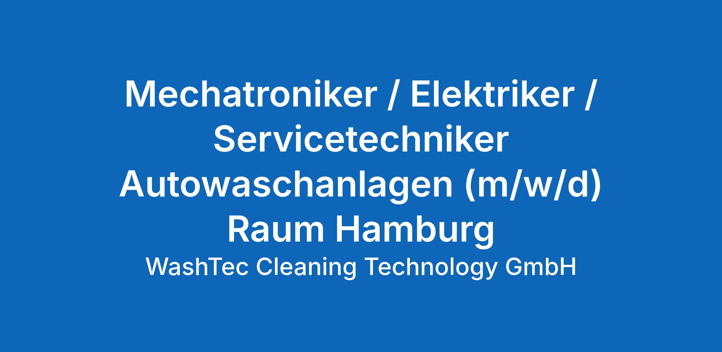Verstärken Sie unser Team als Mechatroniker / Elektriker / Servicetechniker für Autowaschanlagen (m/w/d) im Raum Hamburg. Beim Weltmarktführer WashTec bekommen Ihre Kompetenz und Ihre Erfahrung eine perfekte Bühne. Sind Sie soweit? Bereit für einen Job, der mehr ist als nur ein Job? In einem Team, das mit allen Wassern gewaschen ist. Dann machen Sie sich startklar für eine blitzsaubere Karriere bei WashTec.