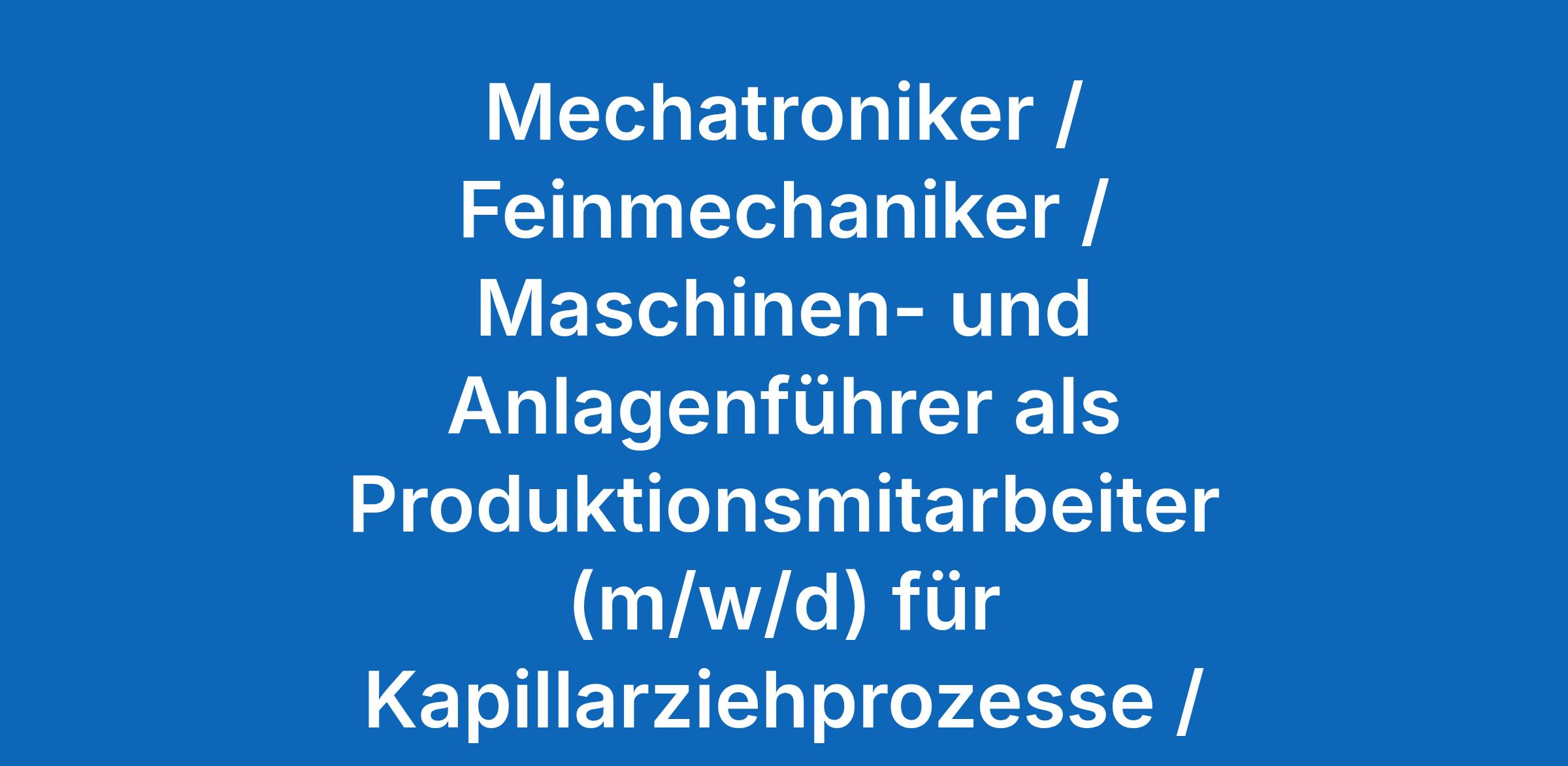 Mechatroniker / Feinmechaniker / Maschinen- und Anlagenführer als Produktionsmitarbeiter (m/w/d) für Kapillarziehprozesse / Quarzglasfertigung