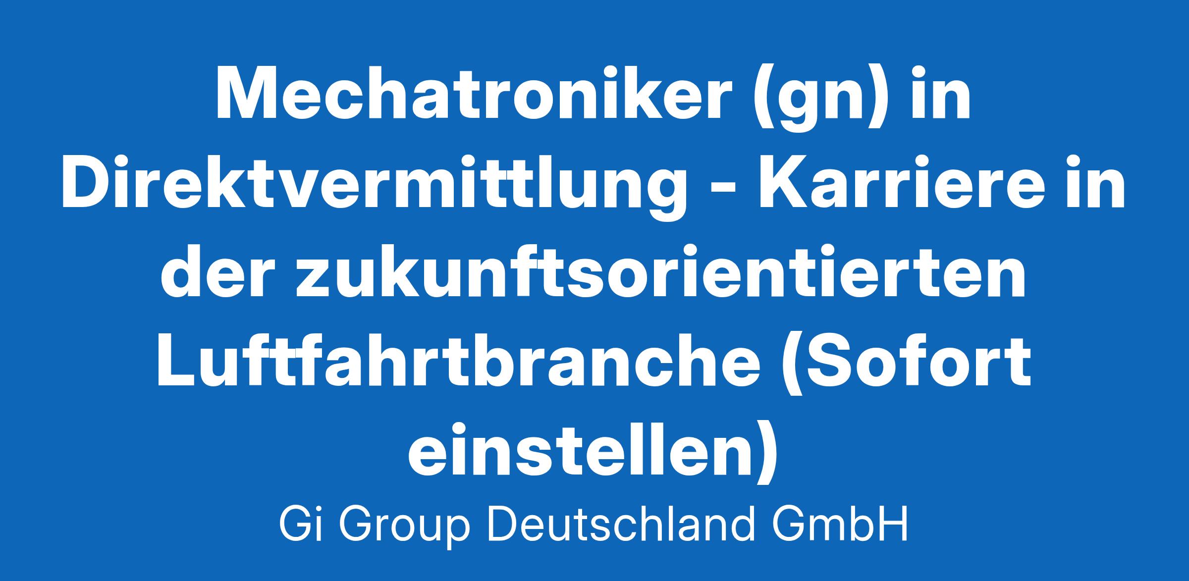 Mechatroniker (gn) in der Luftfahrtindustrie ab sofort in Vollzeit in Hamburg im Rahmen der Direktvermittlung Die Gi Group ist ein international agierender Personaldienstleister mit mehr als 500 Standorten in 40 Ländern. Unser Kunde ist ein renommiertes und zukunftsorientiertes Unternehmen aus der Luftfahrt. Deine Aufgaben Ausführung von Reparaturen an elektromechanischen Bauteilen und Geräten Fehlerdiagnosen an elektromechanischen Fluggeräten oder Baugruppen unter Anwendung von Messgeräten, Test- und Prüfeinrichtungen durchführen Mit technischen Unterlagen arbeiten und die Dokumentation entsprechend pflegen Dein Profil Eine abgeschlossene Berufsausbildung in einem luftfahrttechnischen Bereich, z.B. Fluggerätelektronik Alternativ ist eine abgeschlossene Berufsausbildung in einem Beruf mit Schwerpunkt Mechatronik, z.B. Mechatroniker, Elektromechaniker oder eine gleichwertige Qualifikation wünschenswert Fachkenntnisse in der Wartung, Instandhaltung und Montage Bereitschaft zum Erwerb fehlender Qualifikationen sowie zu berufsbezogener Weiterbildung Gute Englischkenntnisse Das bietet unser Kunde Urlaubs- und Weihnachtsgeld sowie eine Gewinnbeteiligung Flexible Arbeitszeiten (Gleitzeit, keine Schichtarbeit) und 30 Tage Urlaub Flugvergünstigungen, Einkaufsrabatte in Geschäften und Jobrad-Leasing Kostenloses Parken, betriebliche Altersvorsorge und Verpflegungszuschuss für die Kantine Deine Bewerbung Für Deine Bewerbung als Mechatroniker klicke bitte einfach auf „Jetzt bewerben“. Dort kannst Du Deine Kontaktdaten eingeben sowie Deinen Lebenslauf und Deine Bewerbungsunterlagen hochladen. Du benötigst dafür nur ca. 1 Minute. Dein zuständiger Personaldisponent wird sich bei Dir schnellstmöglich melden. Gerne kannst Du uns auch Deine Bewerbungsunterlagen per E-Mail zusenden. Wir freuen uns auf Deine Bewerbung als Mechatroniker in der Luftfahrtindustrie! Unsere Stellenangebote richten sich an Arbeitssuchende jeglichen Geschlechts. (gn) = geschlechtsneutral. Kontakt Gi Group Recruiting Team