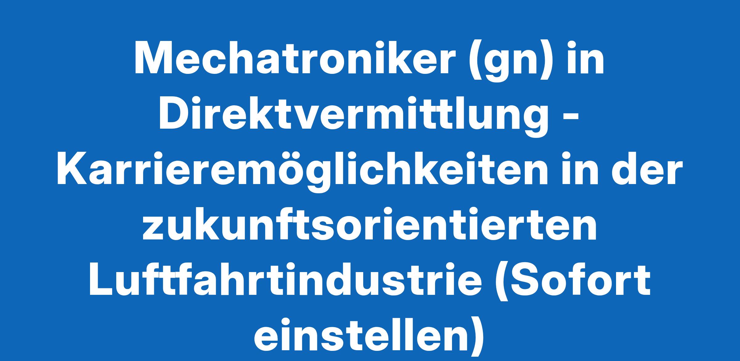 Mechatroniker (gn) in Direktvermittlung - Karrieremöglichkeiten in der zukunftsorientierten Luftfahrtindustrie (Sofort einstellen)