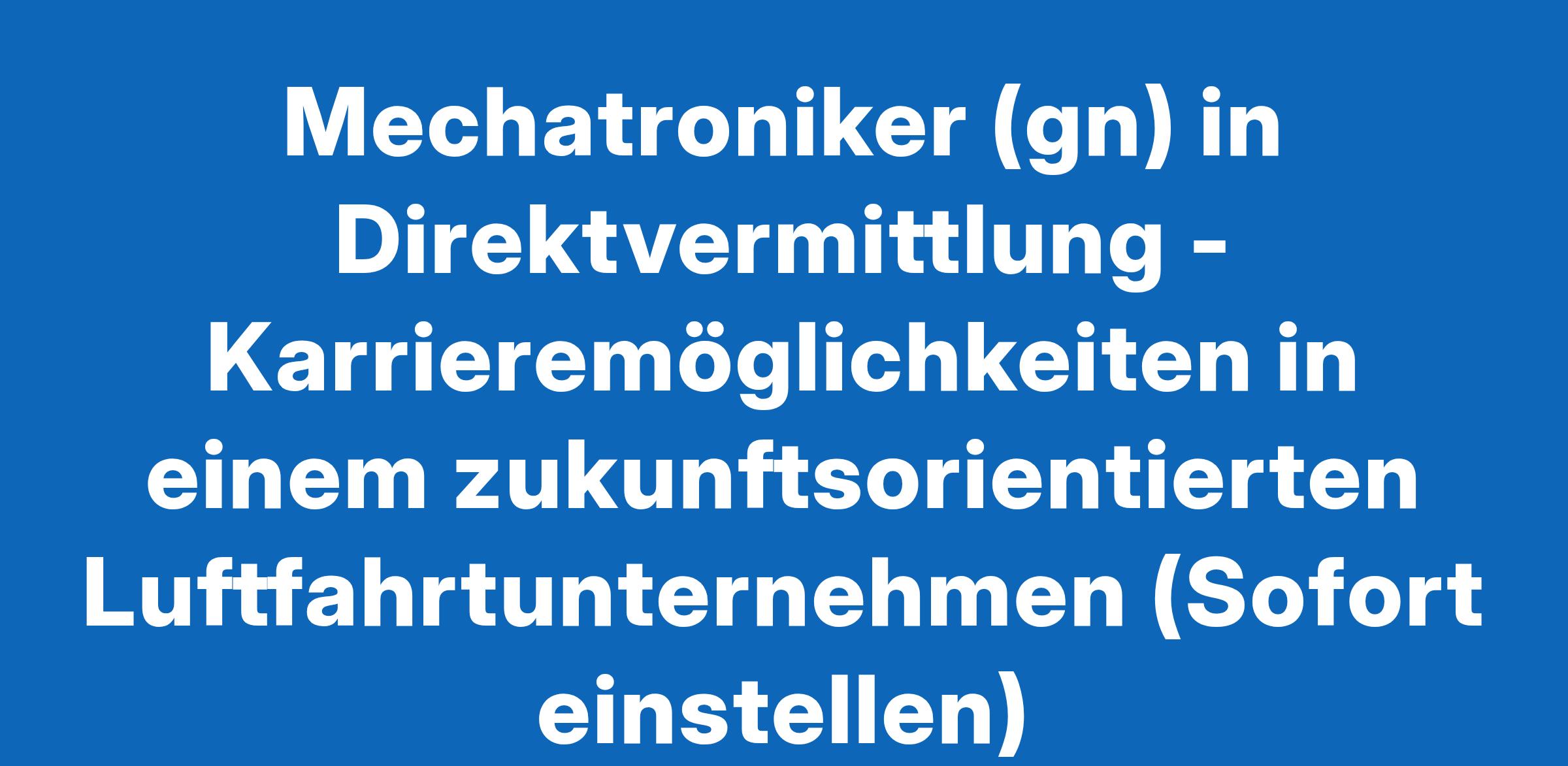 Mechatroniker (gn) in Direktvermittlung - Karrieremöglichkeiten in einem zukunftsorientierten Luftfahrtunternehmen (Sofort einstellen)
