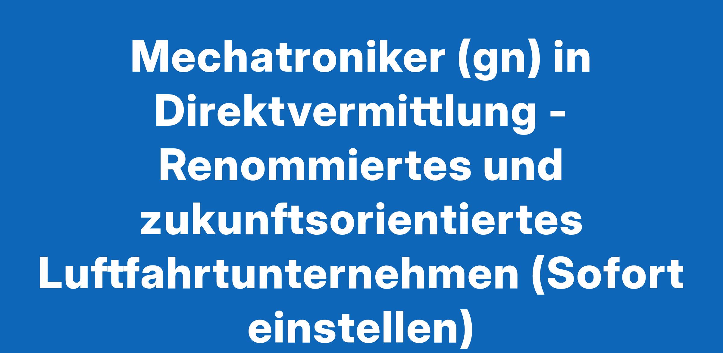 Mechatroniker (gn) in Direktvermittlung - Renommiertes und zukunftsorientiertes Luftfahrtunternehmen (Sofort einstellen)