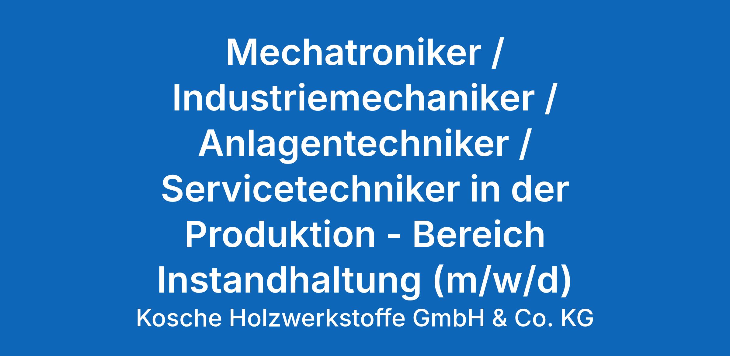 Als Mechatroniker / Industriemechaniker / Anlagentechniker / Servicetechniker in der Produktion (m/w/d) führen Sie unter anderem mechanische Wartungs- und Instandsetzungsarbeiten sowie laufende Inspektionen der Anlagen zur Sicherstellung der Anlagenzuverlässigkeit durch.