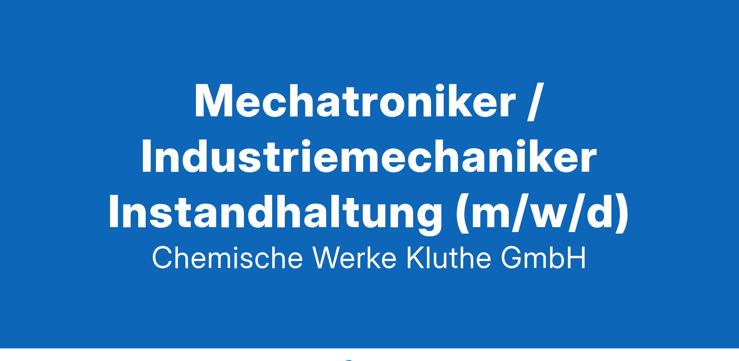 Mechatroniker / Industriemechaniker Instandhaltung (m/w/d)Wir sind ein familiengeführtes, globales Unternehmen der Spezialitätenchemie auf den Gebieten Paintshop-Materialien und Metallbearbeitungsmedien mit Tochterunternehmen, Lizenznehmern und Partnern im In- und Ausland. Im Zuge unseres weiteren Wachstums suchen wir zum nächstmöglichen Zeitpunkt einen engagierten Mechatroniker / Industriemechaniker Instandhaltung (m/w/d)Ihre Aufgaben: Sicherstellung der Verfügbarkeit aller Produktionsanlagen Wartung und Reparatur von Produktionsmaschinen, Abfüllanlagen und Pumpen Erstellung und Überprüfung der Wartungs- und Instandhaltungsplanung Koordination von Fremdfirmen Mitarbeit an Projekten zu Anlagenerweiterung oder -Umbau Durchführung von Kontrollen an elektrischen Anlagen Dokumentation der durchgeführten Maßnahmen Ihr Profil: Sie haben eine abgeschlossene Ausbildung zum Elektroniker oder Mechatroniker Idealerweise bringen Sie erste Berufserfahrung im Instandhaltungsbereich mit Ausgeprägtes Verantwortungsbewusstsein, Zuverlässigkeit und Teamfähigkeit runden Ihr Profil ab Ihre Benefits:Neben einem spannenden Aufgabenfeld sowie einer individuellen und umfangreichen Einarbeitung in einem stark wachsenden Unternehmen bieten wir Ihnen: Ein attraktives Gehaltspaket Urlaubs- und Weihnachtsgeld 35 Tage Jahresurlaub Flexible Arbeitszeiten VWL / Zuschuss zur Altersvorsorge Gute Verkehrsanbindung und kostenlose Parkplätze KontaktSie suchen eine außerordentlich interessante und abwechslungsreiche Tätigkeit in einem dynamischen Familienunternehmen mit flachen Hierarchien? Dann senden Sie uns Ihre aussagefähige Bewerbung unter Angabe Ihrer Gehaltsvorstellung sowie Ihrer Verfügbarkeit, bitte per E-Mail. Chemische Werke Kluthe GmbH Human Resources Postfach 10 18 69 69008 Heidelberg career@kluthe.com www.kluthe.com