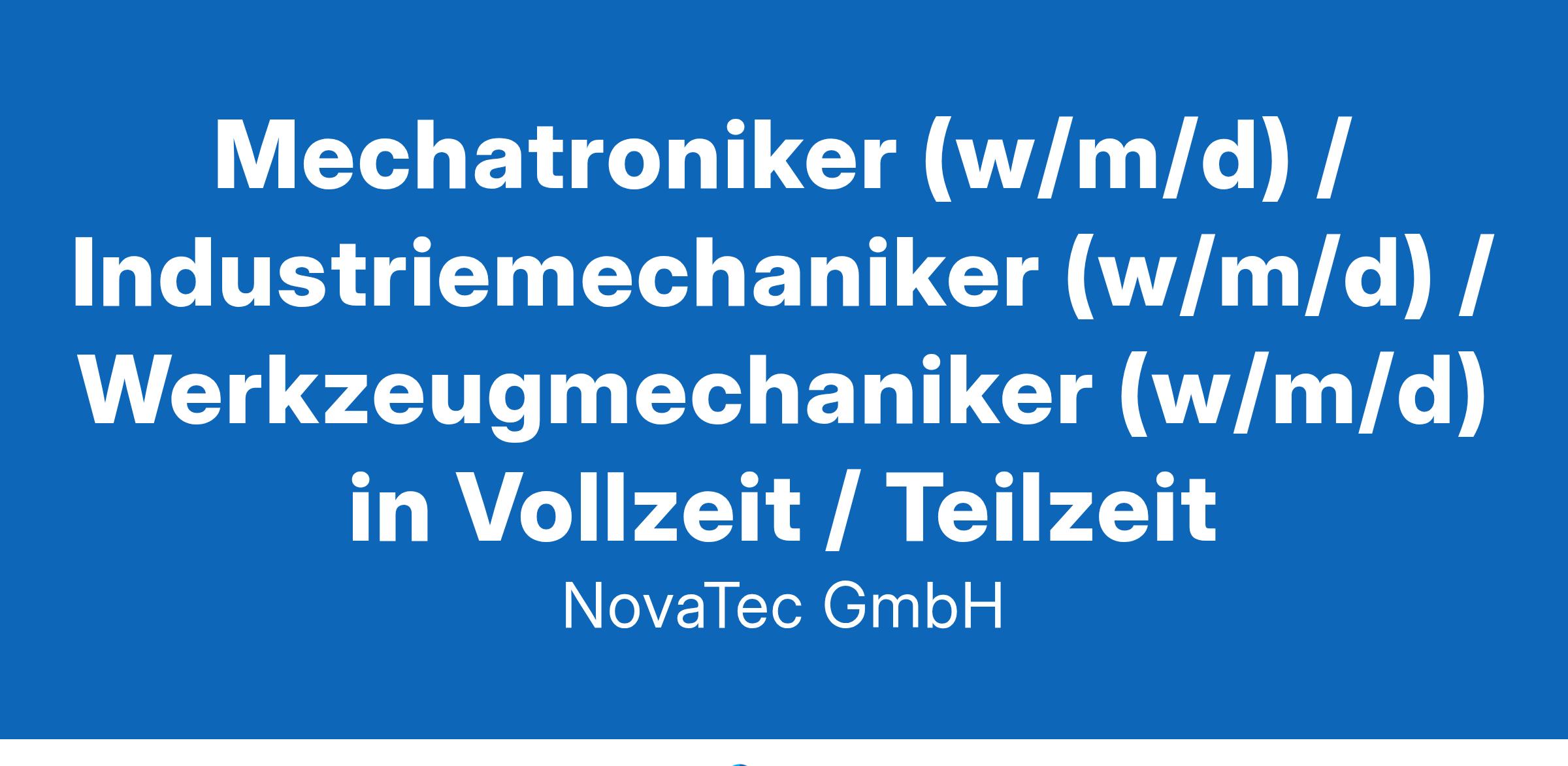 Industriemechaniker (w/m/d) Techniker oder vergleichbare Qualifikation Ihre Aufgaben: Herstellung, Inbetriebnahme und Reparatur unserer Ultraschallschweißgeräte Qualitätsüberwachung der mechanischen und elektronischen Komponenten Erstellung von technischen Dokumentationen Wir erwarten: Erfolgreich abgeschlossene Ausbildung in den oben genannten Bereichen Fundierte Kenntnisse in Mechanik und Elektronik Englisch Grundkenntnisse Wir bieten: Flexible Arbeitszeiten in Voll- oder Teilzeit möglich Gleitende Arbeitszeit Hohe Eigenständigkeit innerhalb eines motivierten Teams mit kurzen Entscheidungswegen Wertschätzender Umgang in einem positiven Betriebsklima Bewerben Sie sich unter Angabe des frühestmöglichen Eintrittstermins per Post unter folgender Adresse: Kontakt: Bewerben Sie sich unter Angabe des frühestmöglichen Eintrittstermins per Post oder E-Mail unter folgender Adresse: NovaTec GmbH