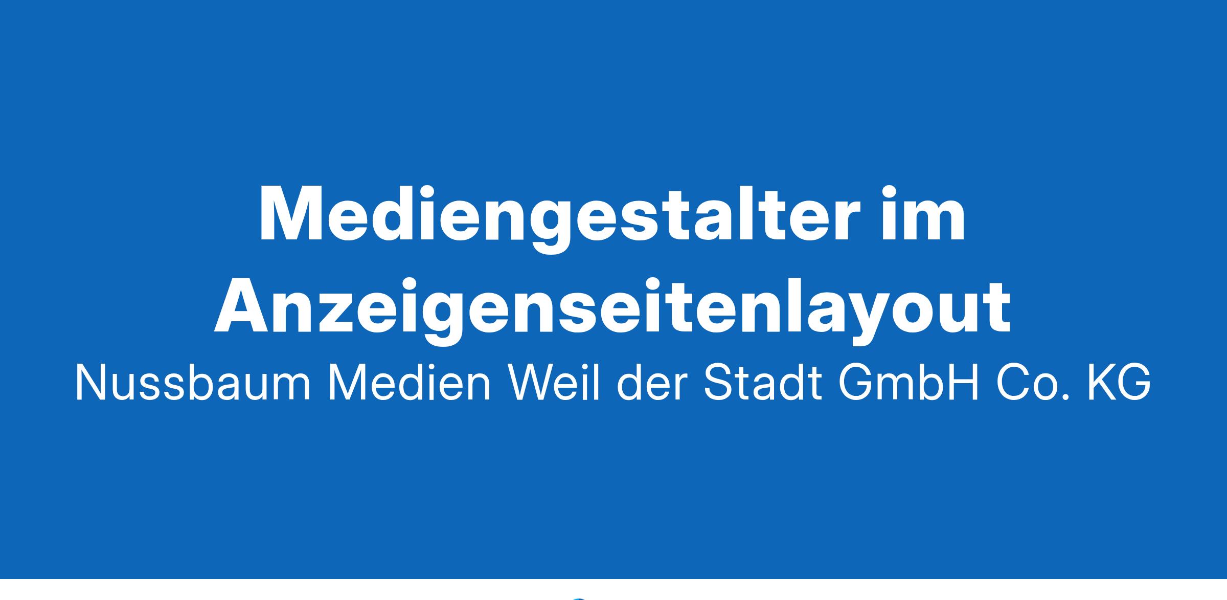 Lust auf was Neues? NUSSBAUM MEDIEN ist ein engagiertes Familienunternehmen und seit 1959 in der Welt der lokalen Kommunikation zu Hause. Mit unseren 7 Standorten und über 1 Mio. Exemplaren wöchentlicher Auflage in mehr als 380 Kommunen sind wir Marktführer für Amtsblätter und Lokalzeitungen in Baden-Württemberg. Im Zuge unseres digitalen Wandels erweitern wir unsere Produktpalette kontinuierlich um innovative digitale Plattformen und Services. Wir suchen Sie zur Verstärkung unseres Teams zum nächstmöglichen Zeitpunkt Mediengestalter im Anzeigenseitenlayout (m/w/d) Weil der Stadt | Teilzeit (18 Std./Woche) Ihre Arbeitstage Dienstag und Mittwoch Ihre Aufgaben Layouterstellung der Anzeigenseiten mit der JJK-Verlagssoftware Montieren der Anzeigen im Layout entsprechend den Buchungen und Berücksichtigung des optischen Gesamtbildes Weiterleitung der fertigen Anzeigenseiten an die Druckvorstufe Interne Abstimmungen mit verschiedenen Abteilungen Das bringen Sie mit Strukturierte, ergebnisorientierte Arbeitsweise Sehr gute Computerkenntnisse Gespür für Seitenlayout Kenntnisse in Adobe InDesign wären von Vorteil Hohe Sozialkompetenz und Kommunikationsfähigkeit Hohes Engagement, Belastbarkeit und Flexibilität Unter anderem bieten wir Ihnen Einen zukunftssicheren Arbeitsplatz bei einem familiengeführten, sozial engagierten Unternehmen Flexible Arbeitszeiten mit Kombination aus Präsenz und mobilem Arbeiten von zu Hause aus 6 Wochen Urlaub pro Jahr plus Sonderurlaub bei persönlichen Ereignissen Zuschuss zu den Kosten der Kindertagesstätte und Nutzung der Kinderbetreuungsstätte Ein betriebliches Gesundheitsmanagement, z. B. JobRad, Gesundheitskurse Onboarding mit Patenprogramm und Möglichkeiten der beruflichen Weiterbildung Wir freuen uns auf Ihre Bewerbung!