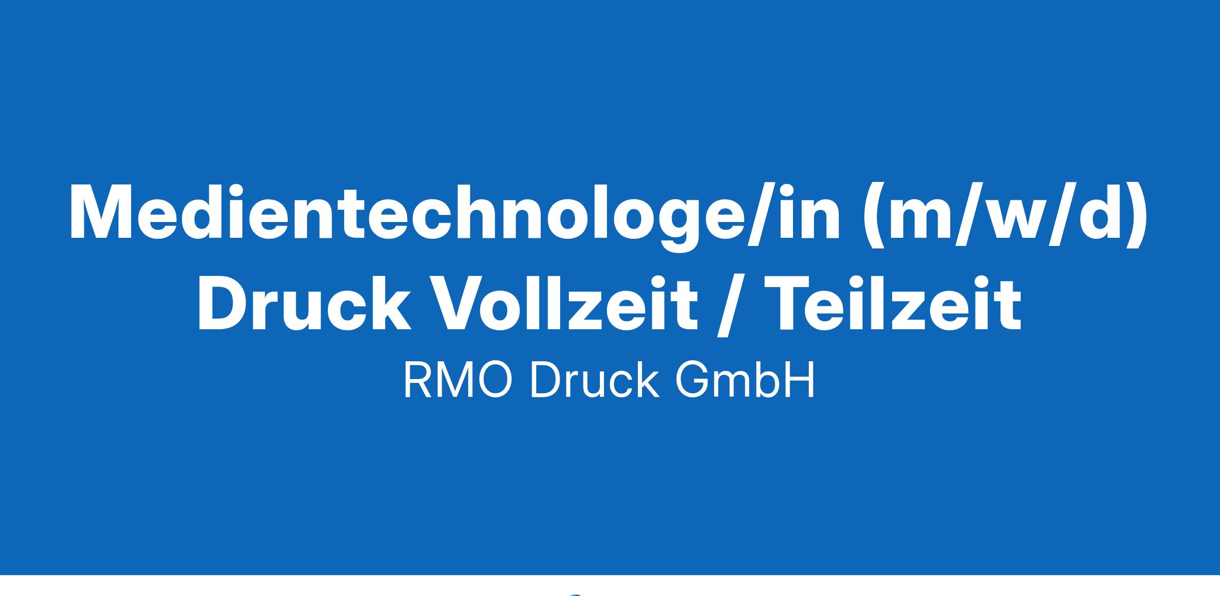 Vollzeit oder Teilzeit (30-35) Ihr Profil: Eine erfolgreiche abgeschlossene Ausbildung als Medientechnologe Offsetdruck Sie arbeiten selbständig und eigeninitiativ auf modernen Heidelberger Druckmaschinen Sie haben eine strukturierte und organisierte Arbeitsweise mit einem hohen Qualitätsanspruch Wir bieten: Festanstellung in Vollzeit oder Teilzeit (30-35 Stunden) Leistungsgerechte Bezahlung und verbindliche soziale Leistungen Ein familiäres Team Einen Arbeitsplatz an zukunftsweisender Technologie (Heidelberg SX 52-4) Eine spannende und abwechslungsreiche Tätigkeit Sie passen zu uns? Dann freuen wir uns auf Sie! Bitte senden Sie Ihre aussagekräftige Bewerbung unter Angabe des frühestens Eintrittstermins per Mail an info[AT]rmo-druck.de