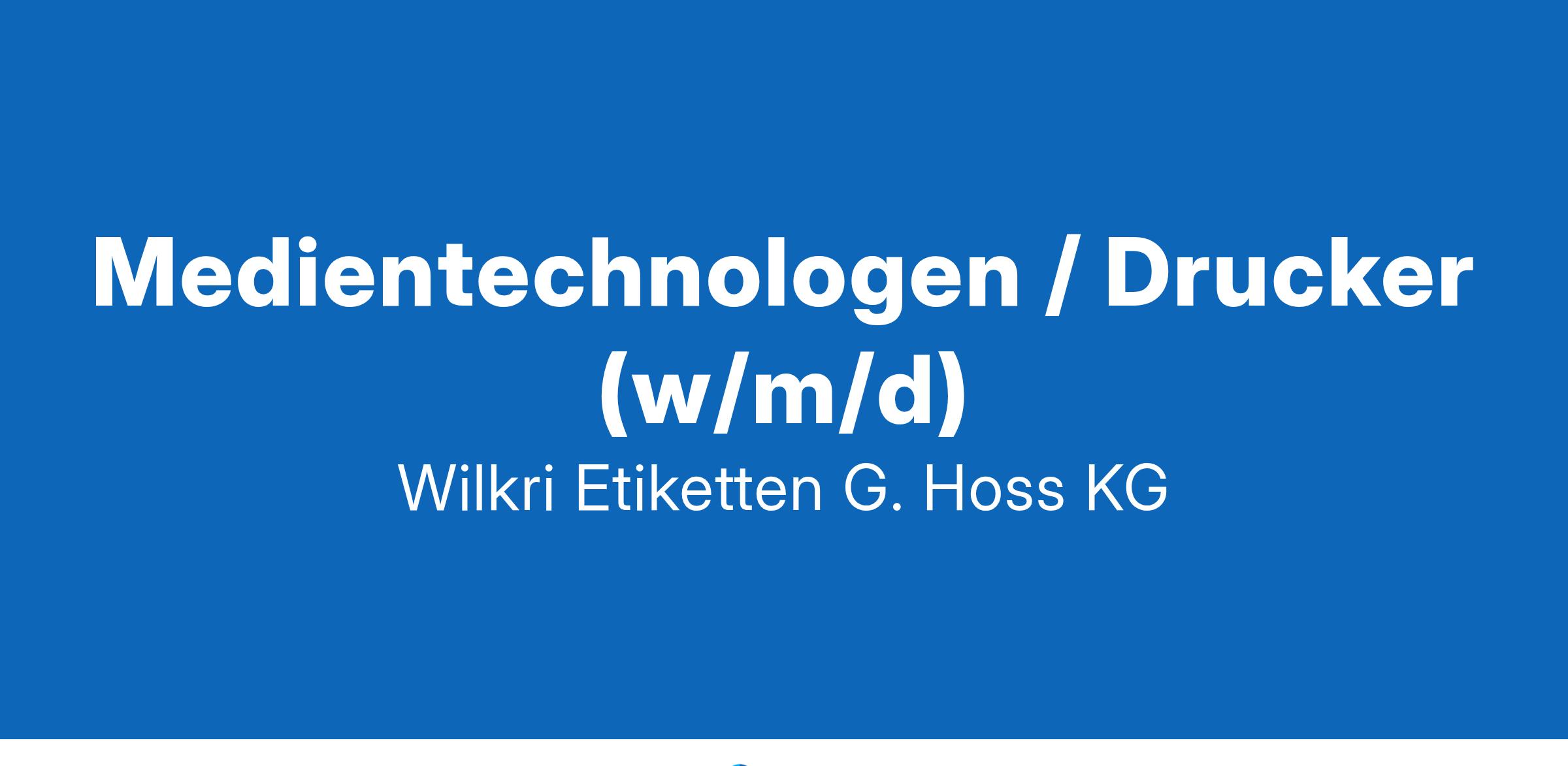 Medientechnologen/Drucker (w/m/d) Nach gründlicher Einarbeitung führen Sie selbständig eine Flexo- oder Offset-Druckmaschine mit bis zu 10 Druckwerken, Veredelungsmöglichkeiten, Lackierwerk und Stanzstationen. Dabei verarbeiten Sie alle gängigen Haftmaterialien und führen die individuellen Kundenaufträge gewissenhaft aus.Ihre Aufgabe: selbstständiges Einrichten der Druckmaschinen Durchführung und Überwachung der Produktion Qualitätsprüfung und -sicherstellung Wartung und Reinigung der Maschinen Ihr Profil: ausgebildeter Medientechnologe oder Berufserfahrung im Führen von Etikettendruckmaschinen fundierte Kenntnisse im Mehrfarbdruck und Farbsicherheit wünschenswert, aber keine Bedingung, sind Kenntnisse auf einem der Gebiete Digitaldruck, Siebdruck, Druckformherstellung, Colormanagement, Druckvorstufe, Stanzen, Heißprägen, Kaltprägen oder Weiterverarbeitung Wir bieten: gute, leistungsgerechte Bezahlung, Weihnachts- und Urlaubsgeld eine abwechslungsreiche Tätigkeit Tagschicht, teilweise Früh- und Spätschicht, keine Nachtschicht einen unbefristeten Arbeitsvertrag in einem soliden Unternehmen ein angenehmes Betriebsklima und freundliche Kolleg:innen KOMMEN SIE AN BORDWenn Sie mit uns erfolgreich sein wollen, dann freuen wir uns auf Ihre vollständige Bewerbung, mit Angabe Ihrer Gehaltsvorstellung, per E-Mail an Bewerbung@wilkri.de. Wir garantieren absolute Vertraulichkeit und freuen uns auf Ihre Kontaktaufnahme. Wilkri-Etiketten G. Hoss KG