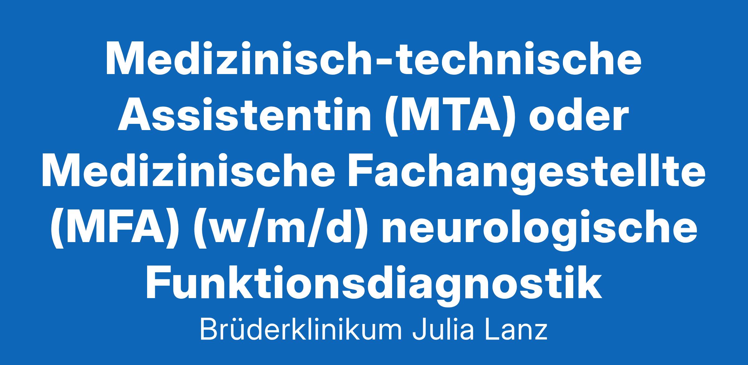 Wir suchen zum nächstmöglichen Zeitpunkt für unser Team in der Klinik für Neurologie am Brüderklinikum Julia Lanz - Diako eine/n Mitarbeiter/in (m/w/d) für die neurologische Funktionsdiagnostik Medizinisch-technische/r Assistent/in (MTA) oder Medizinische Fachangestellte (MFA) in Teilzeit (70 %).