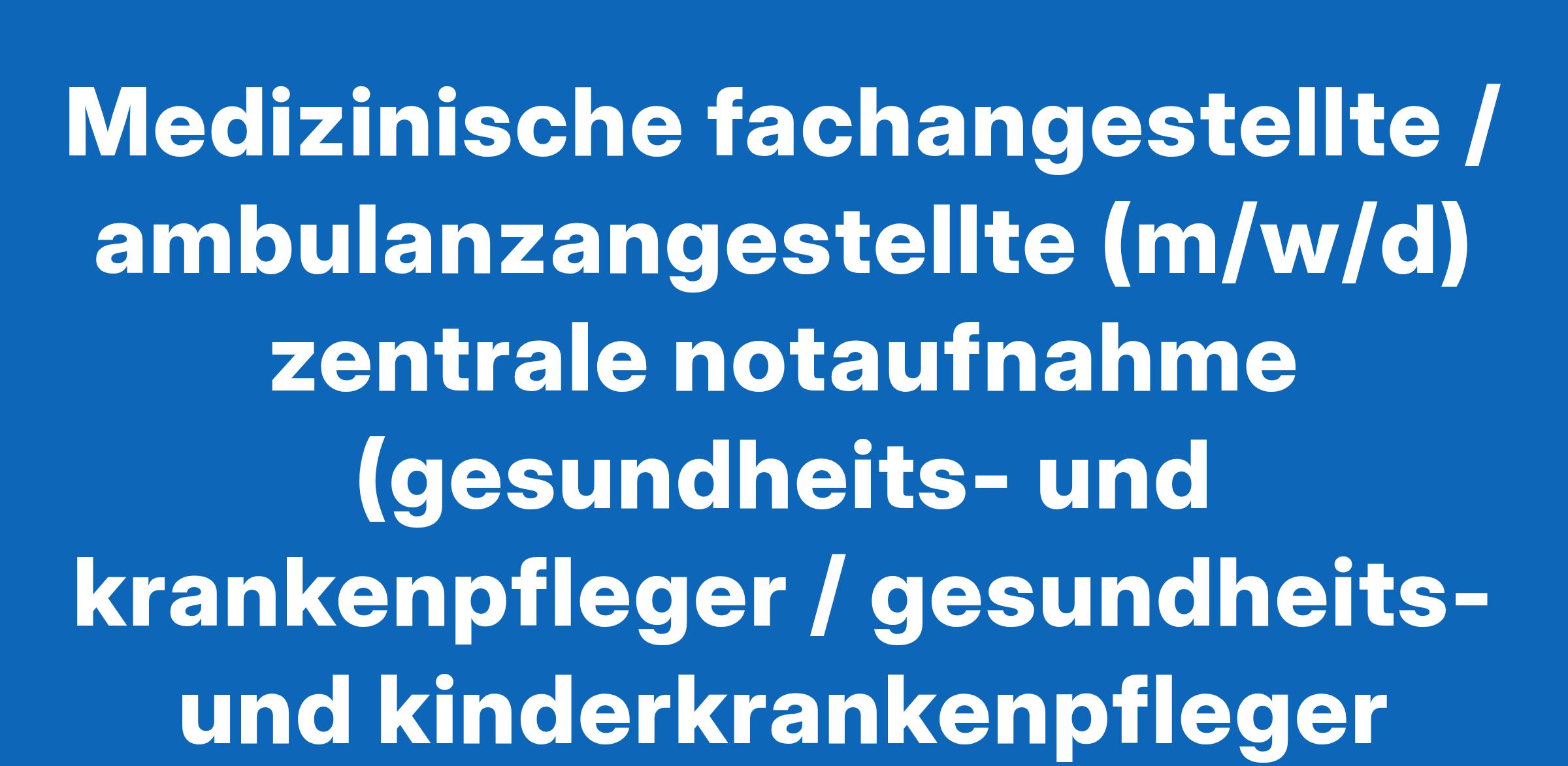 Städtisches Klinikum Lüneburg gemeinnützige Gmb H -- Medizinische Fachangestellte / Ambulanzangestellte (m/w/d) Zentrale Notaufnahme (Gesundheits- und Krankenpfleger / Gesundheits- und Kinderkrankenpfleger (m/w/d))Das Klinikum Lüneburg ist ein sich dynamisch entwickelndes Akutkrankenhaus der Schwerpunktversorgung und eine von neun Gesellschaften unter dem Dach der kommunalen Gesundheitsholding Lüneburg als größter Arbeitgeber und Ausbilder der Region. Als akademisches Lehrkrankenhaus des Universitätsklinikums Hamburg-Eppendorf bietet das Klinikum Lüneburg ein breites medizinisches Leistungsspektrum mit dreizehn Kliniken und Instituten mit über 562 Planbetten. Vier Belegabteilungen, eine Belegklinik für Orthopädische und Rheumatologische Chirurgie und eine Berufsfachschule für Pflegeberufe mit den Vertiefungsangeboten akute stationäre Versorgung und pädiatrische Versorgung erweitern das umfassende Angebot.Wir suchen für unser Team in der Zentralen Notaufnahme zum nächstmöglichen Zeitpunkt eineMedizinische Fachangestellte (m/w/d)Ihre AufgabenTerminierung, Einbestellung und der Empfang der PatientenErsteinschätzung bei Notfällen nach dem Manchester-Triage-SystemOrganisation und Priorisierung der BehandlungsreihenfolgeDurchführung der administrativen elektronischen Aufnahme der Patienten und die Klärung der Vorgeschichten einschließlich der Bereitstellung der vorhandenen UnterlagenUnterstützung bei der Dokumentation und der Datenerfassungdie Durchführung von Blutentnahmen und Ersterhebung der VitalparameterIhr ProfilVoraussetzung für die & Uuml;bernahme dieser Position ist eine abgeschlossene Berufsausbildung zum medizinischen Fachangestellten (m/w/d), zum Gesundheits- und Krankenpfleger (m/w/d) oder zum Gesundheits- und Kinderkrankenpfleger (m/w/d).Wir wünschen uns eine offene und freundliche Persönlichkeit mit Spaß an ihrem Beruf.Wir bieten Ihneneine attraktive, abwechslungsreiche Tätigkeit in einem interdisziplinären TeamEntgelt und Beschäftigung nach TVö Dumfangreiche betriebliche Altersvorsorge, betriebliches Gesundheitsmanagement/Angebote zum BetriebssportUnterstützung bei der Kitaplatz-Vermittlung und betrieblich organisierte FerienbetreuungHVV-Ticket, Unterstützung bei der Wohnungssuche u. v. mFür Rückfragen und nähere Auskünfte steht Ihnen die Abteilungsleitung Meike Flim unter der Durchwahl oder unter gern zur Verfügung.Städtisches Klinikum Lüneburg gemeinnützige Gmb HGeschäftsbereich PersonalPostfach 282321318 Lüneburgwww.klinikum-lueneburg.de