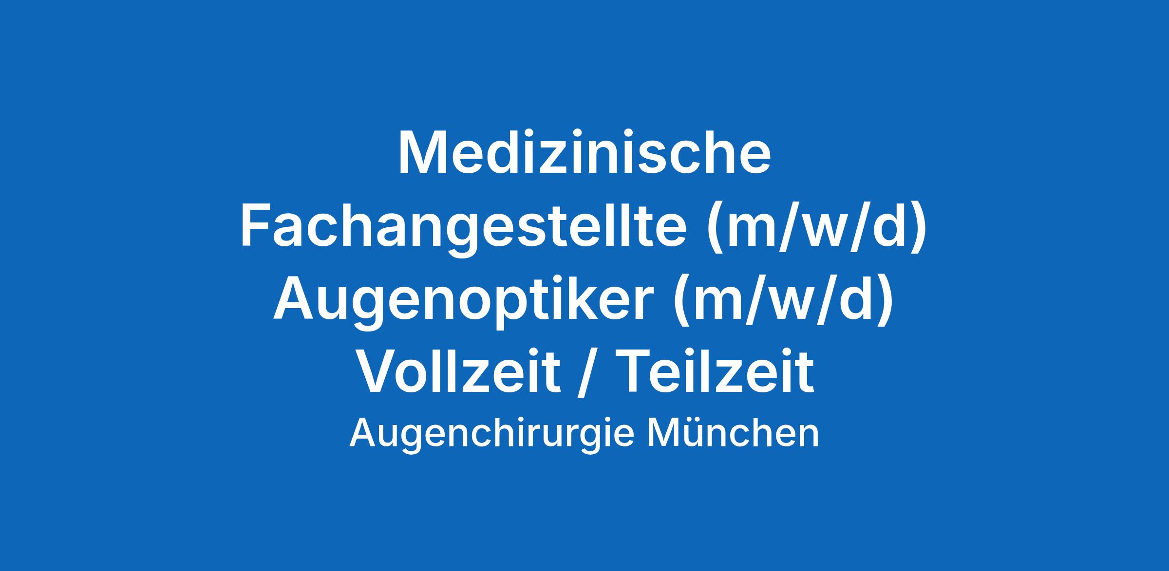 Medizinische Fachangestellte (m/w/d) Augenoptiker (m/w/d) Vollzeit / Teilzeit
