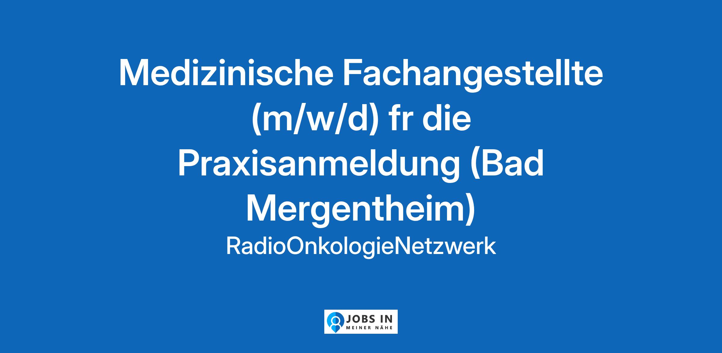 Zur Verstrkung unseres Teams der Strahlentherapie Tauber-Franken in Bad Mergentheim suchen wir ab sofort oder zum nchstmglichen Zeitpunkt Medizinische Fachangestellte (m/w/d) fr die Praxisanmeldung .